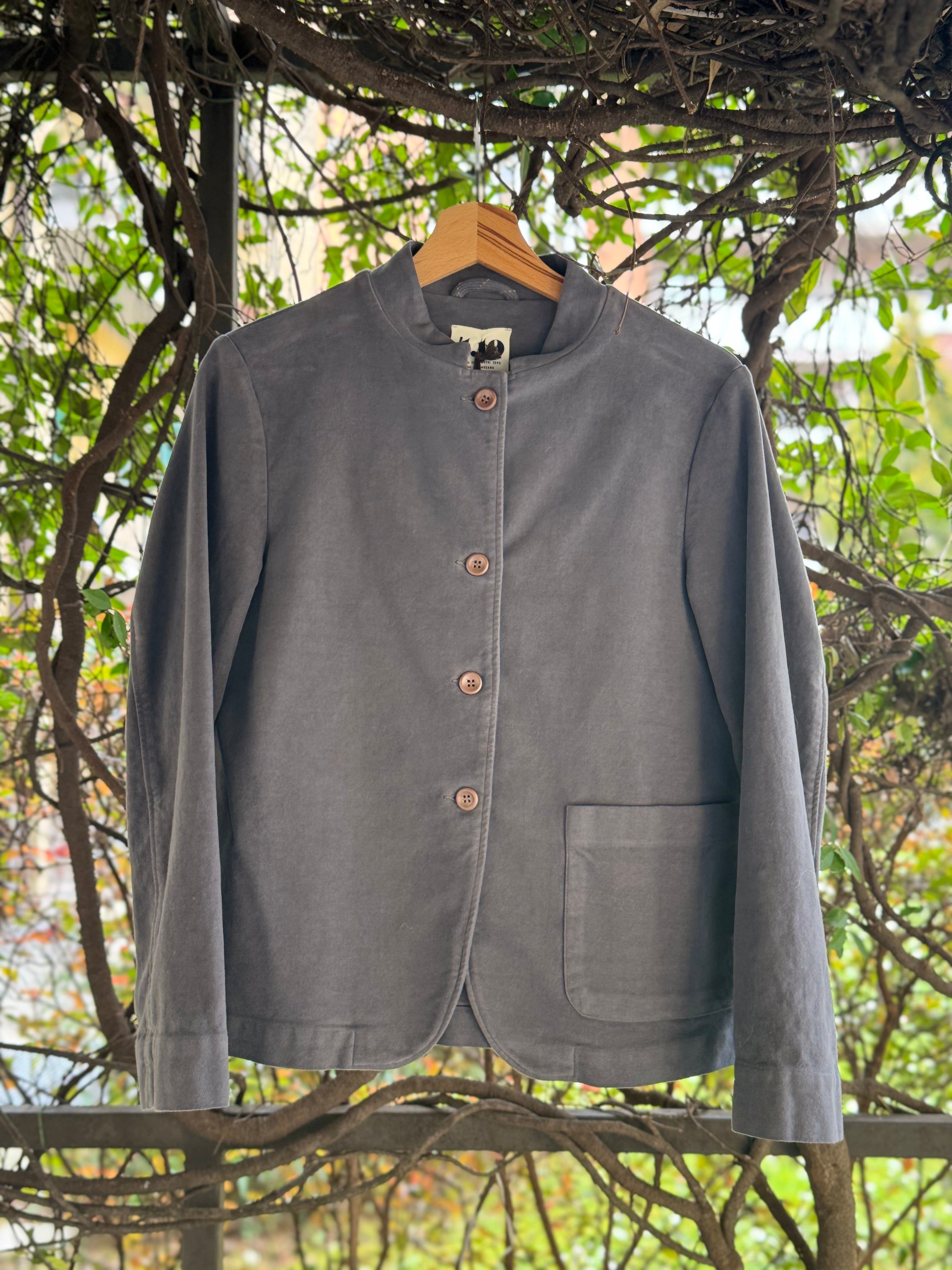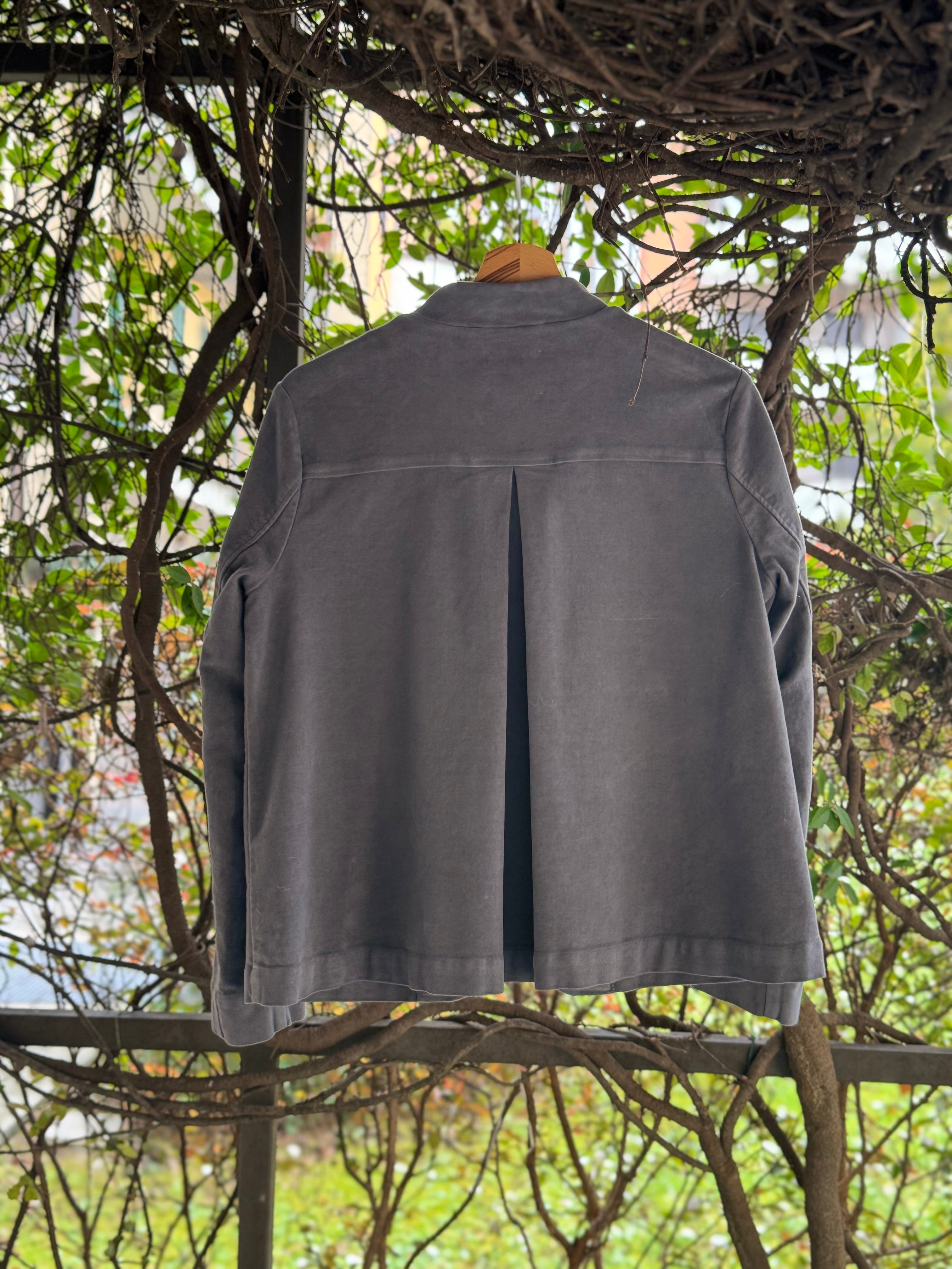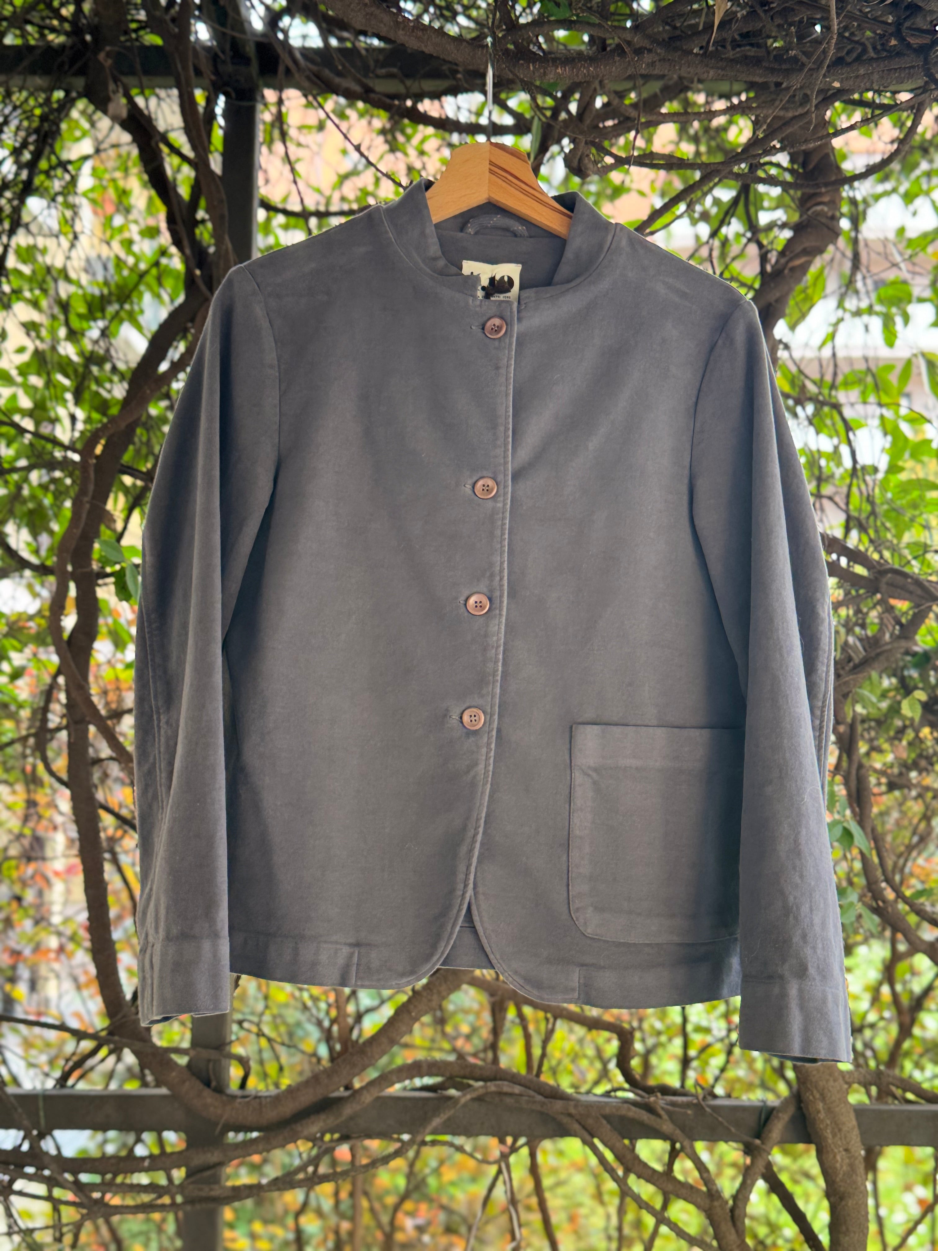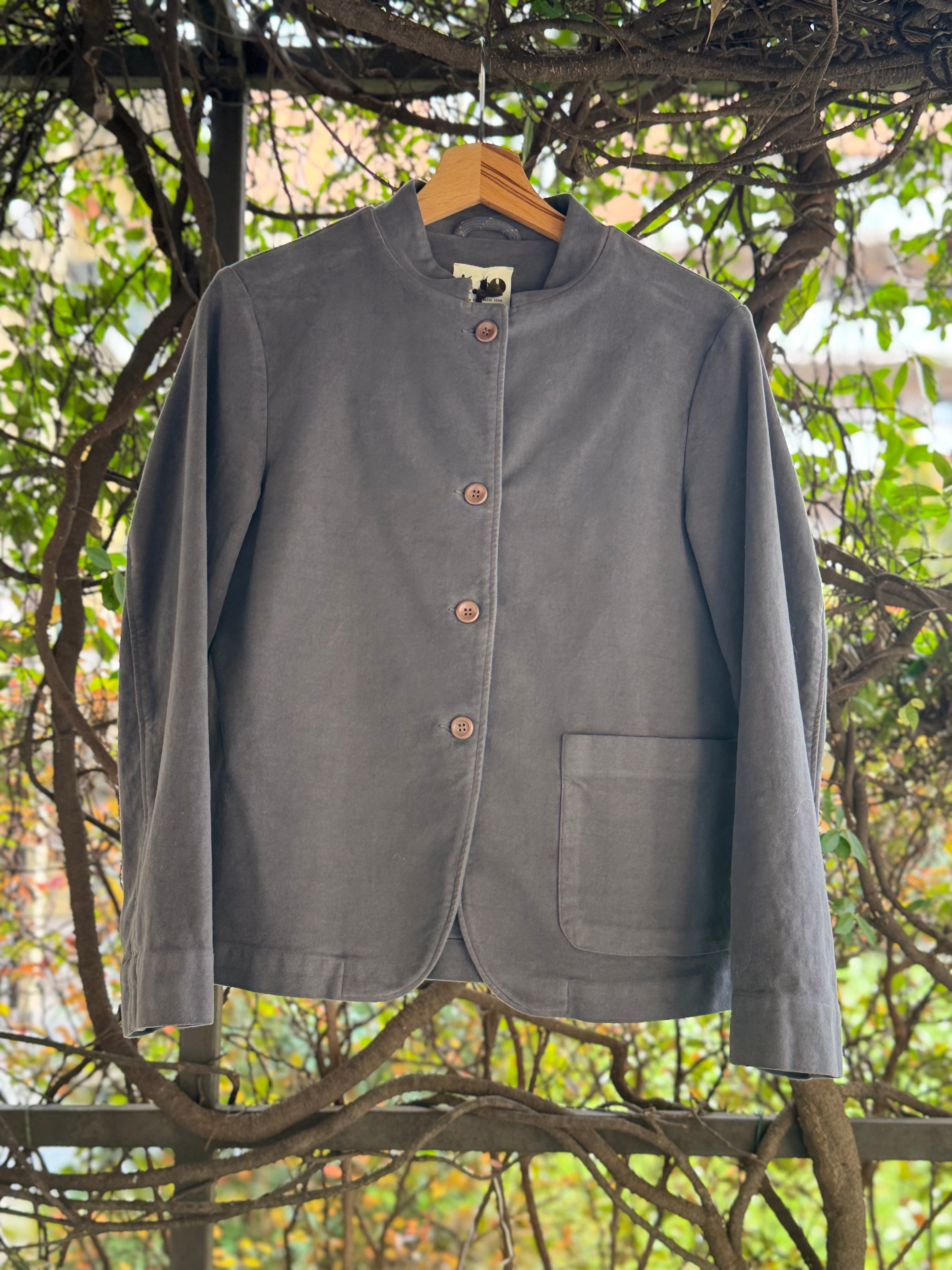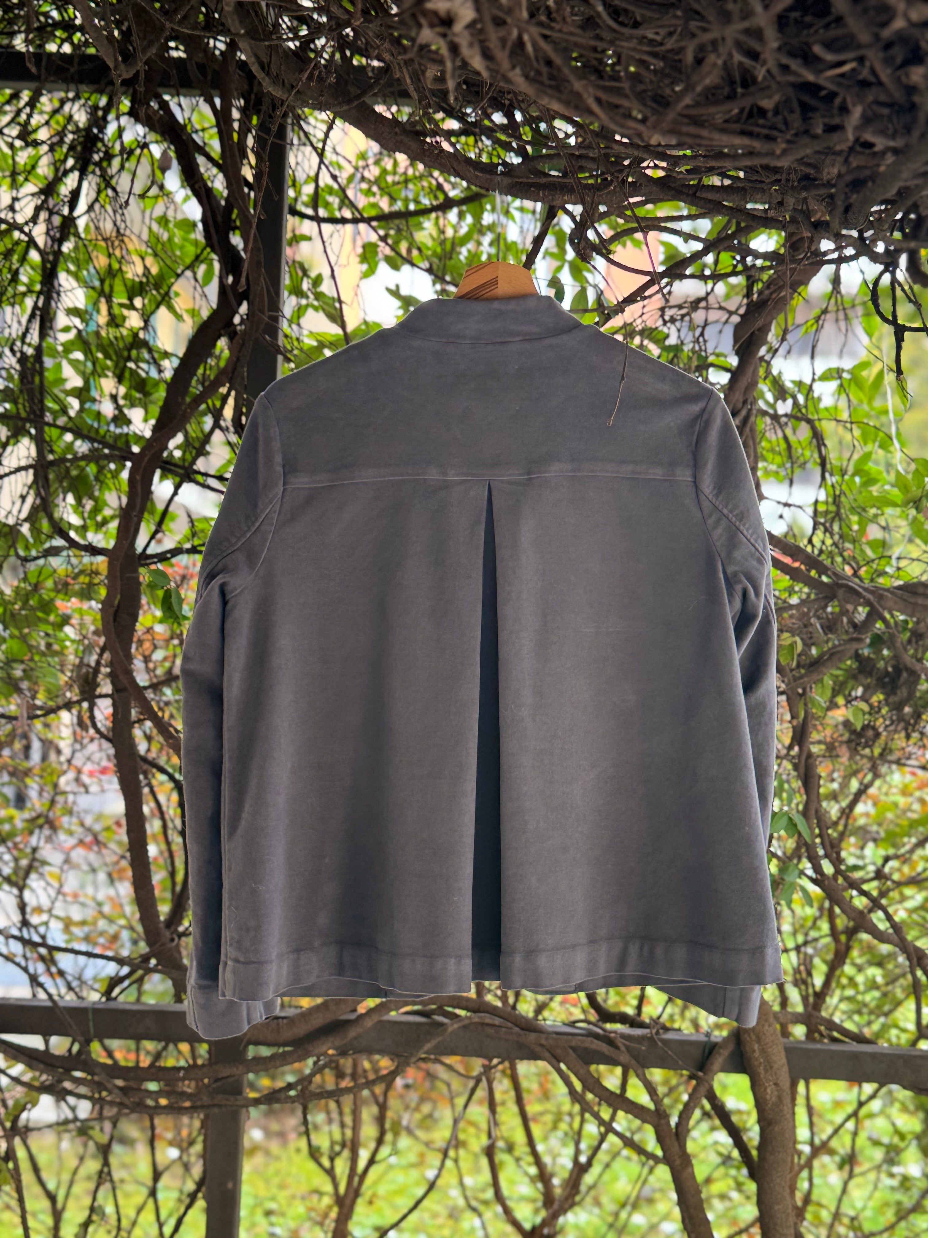 Giacca alla coreana svasata con sfondo piega sulla schiena, taschina applicata sul davanti.