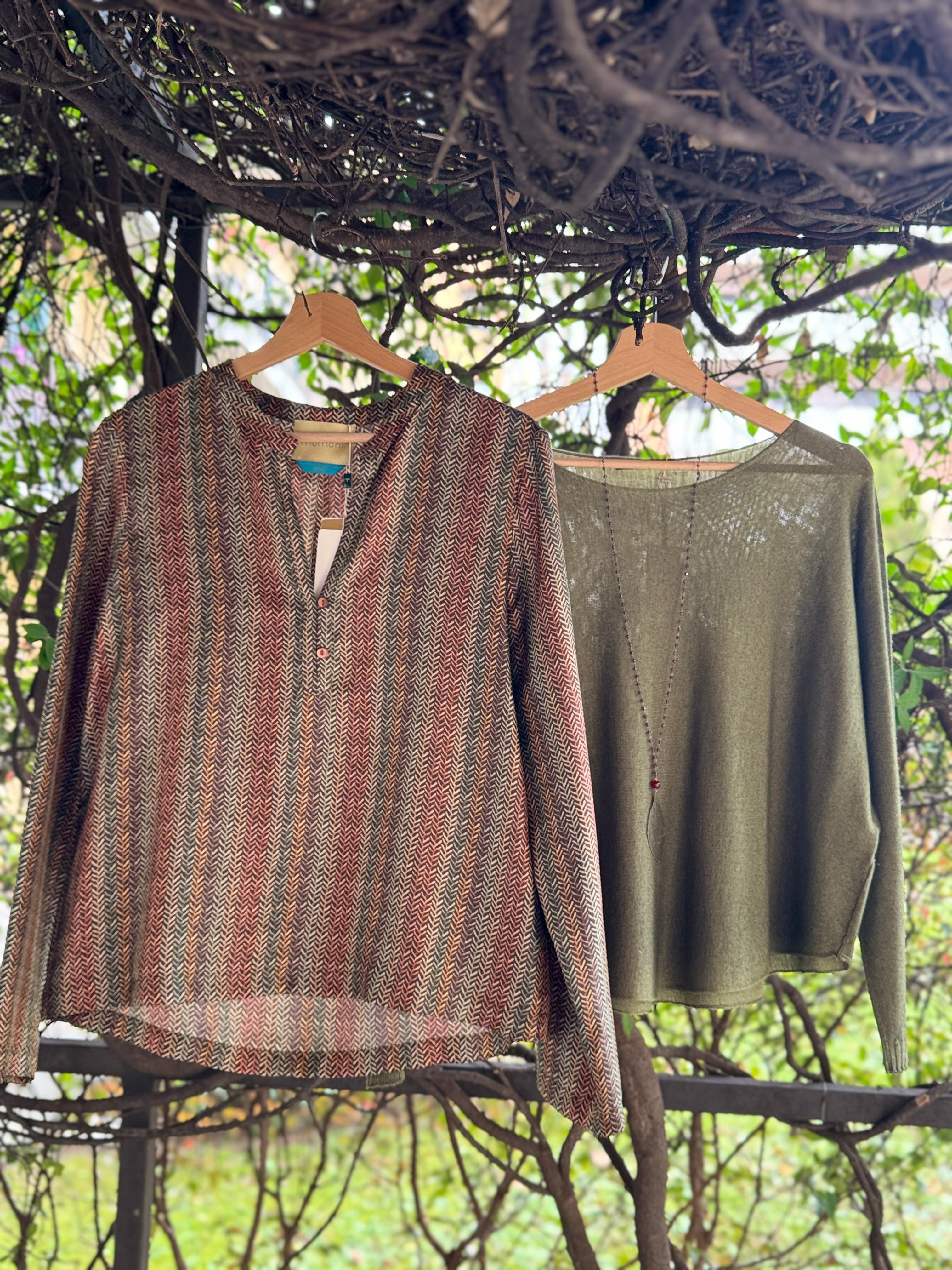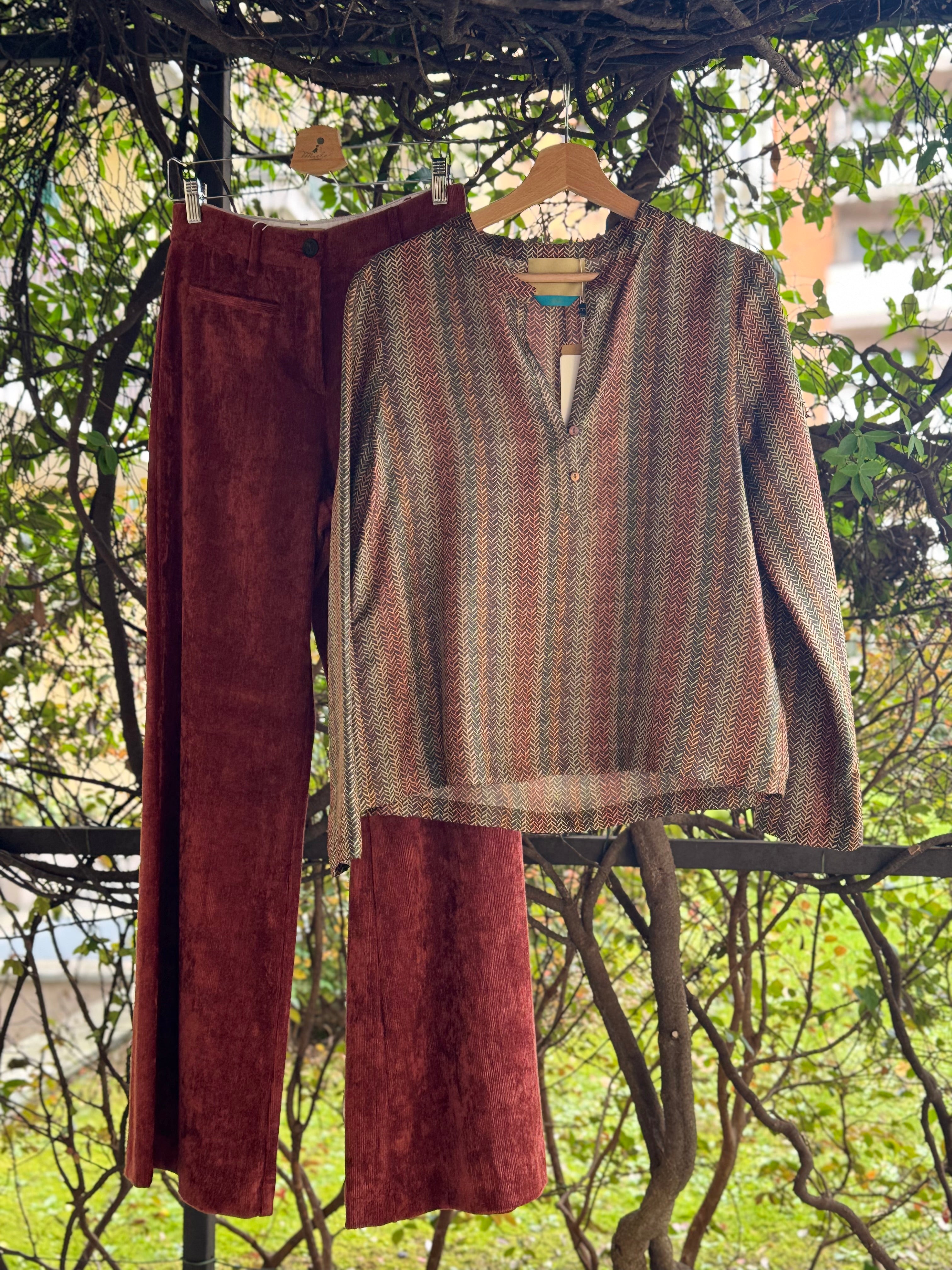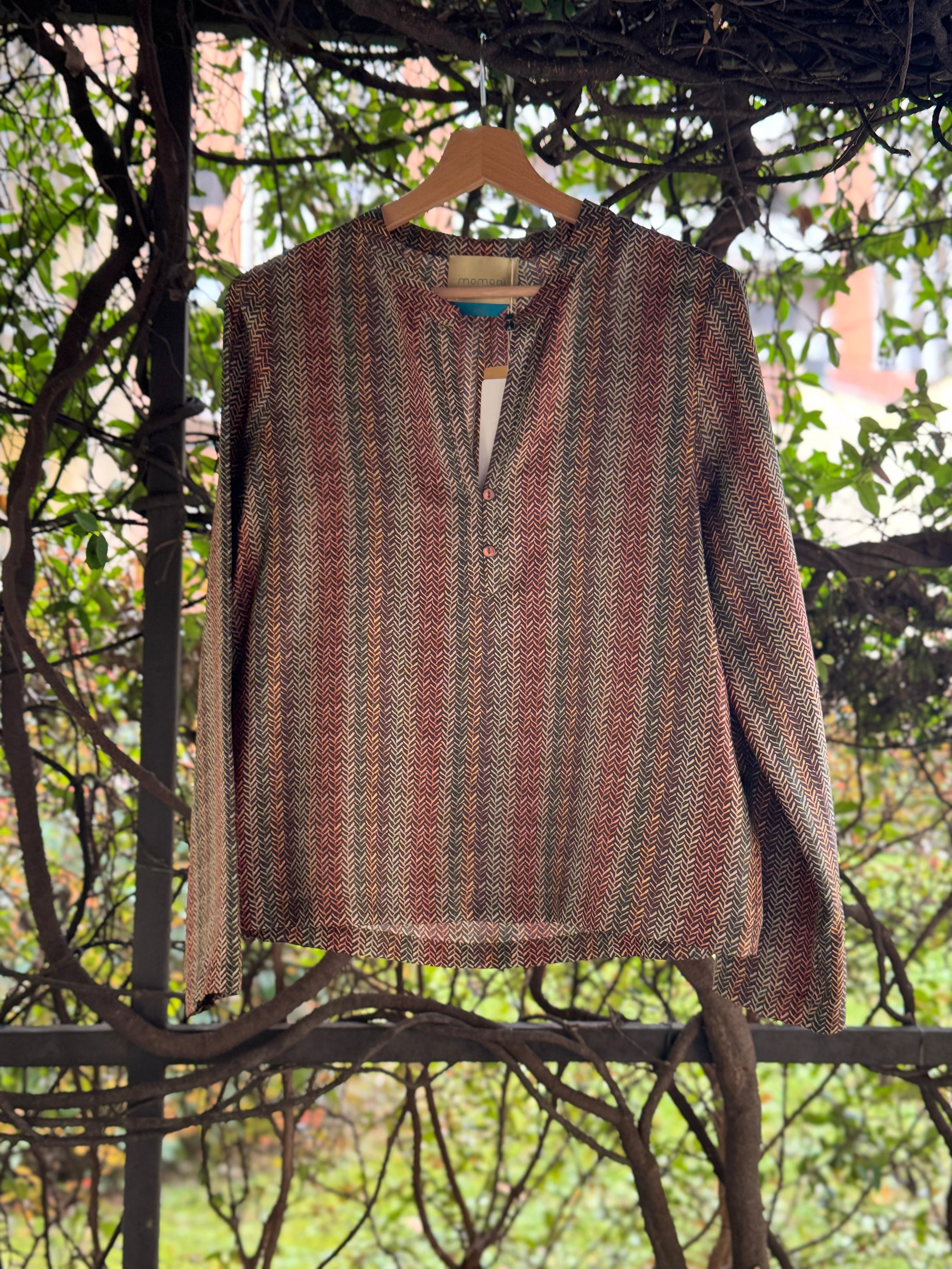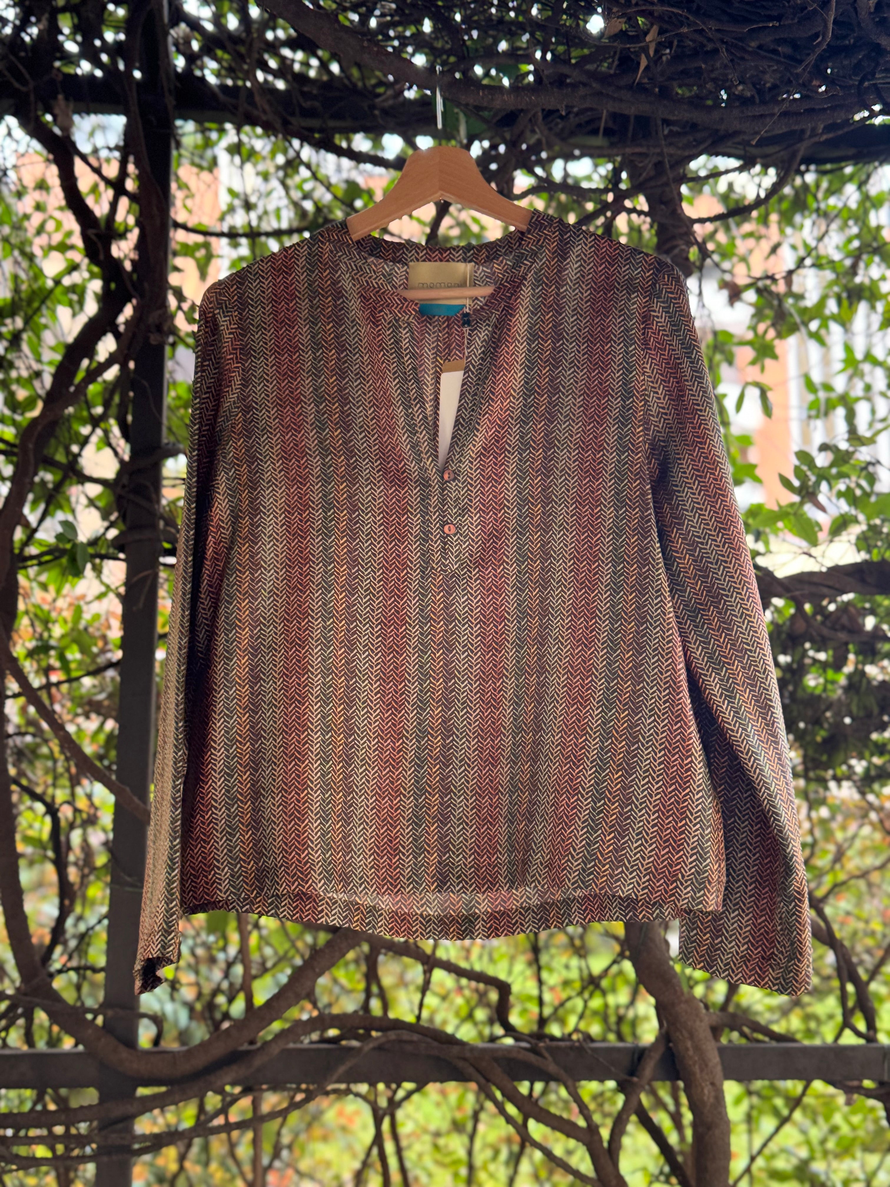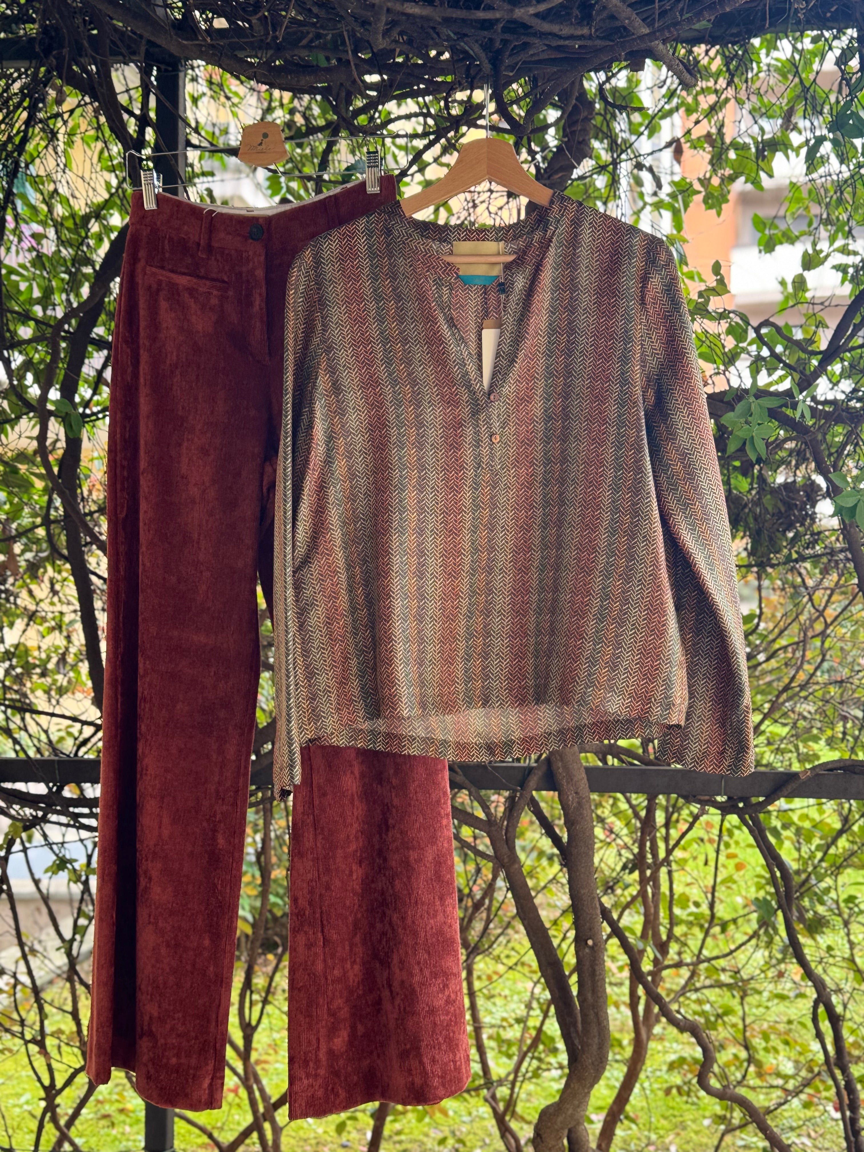 Blusa in seta con scollo alla coreana allacciato con bottoncini