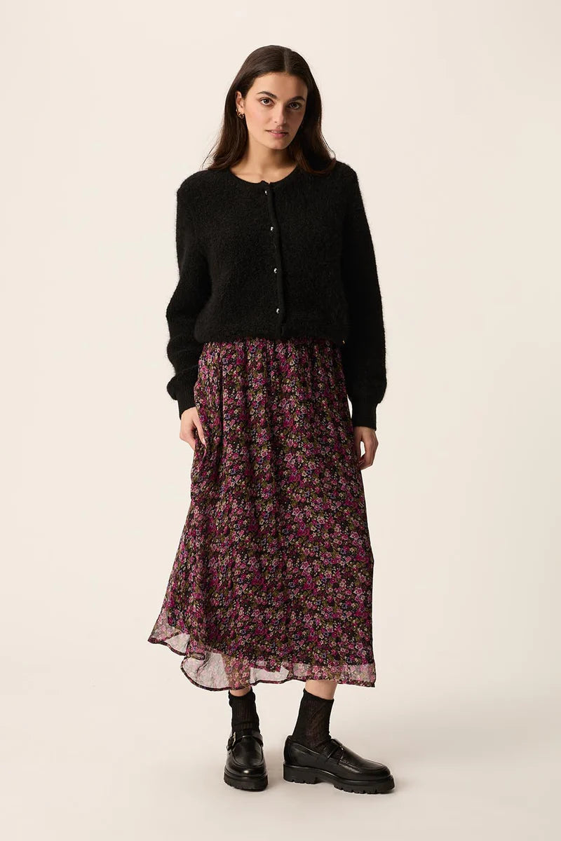 Gonna Midi in voile di viscosa a fiorellini completamente foderata, con cerniera sul fianco