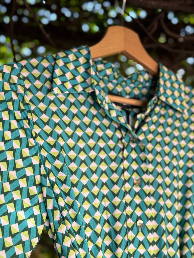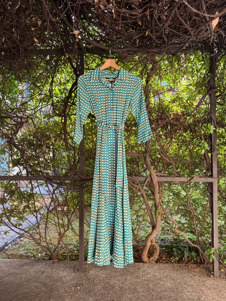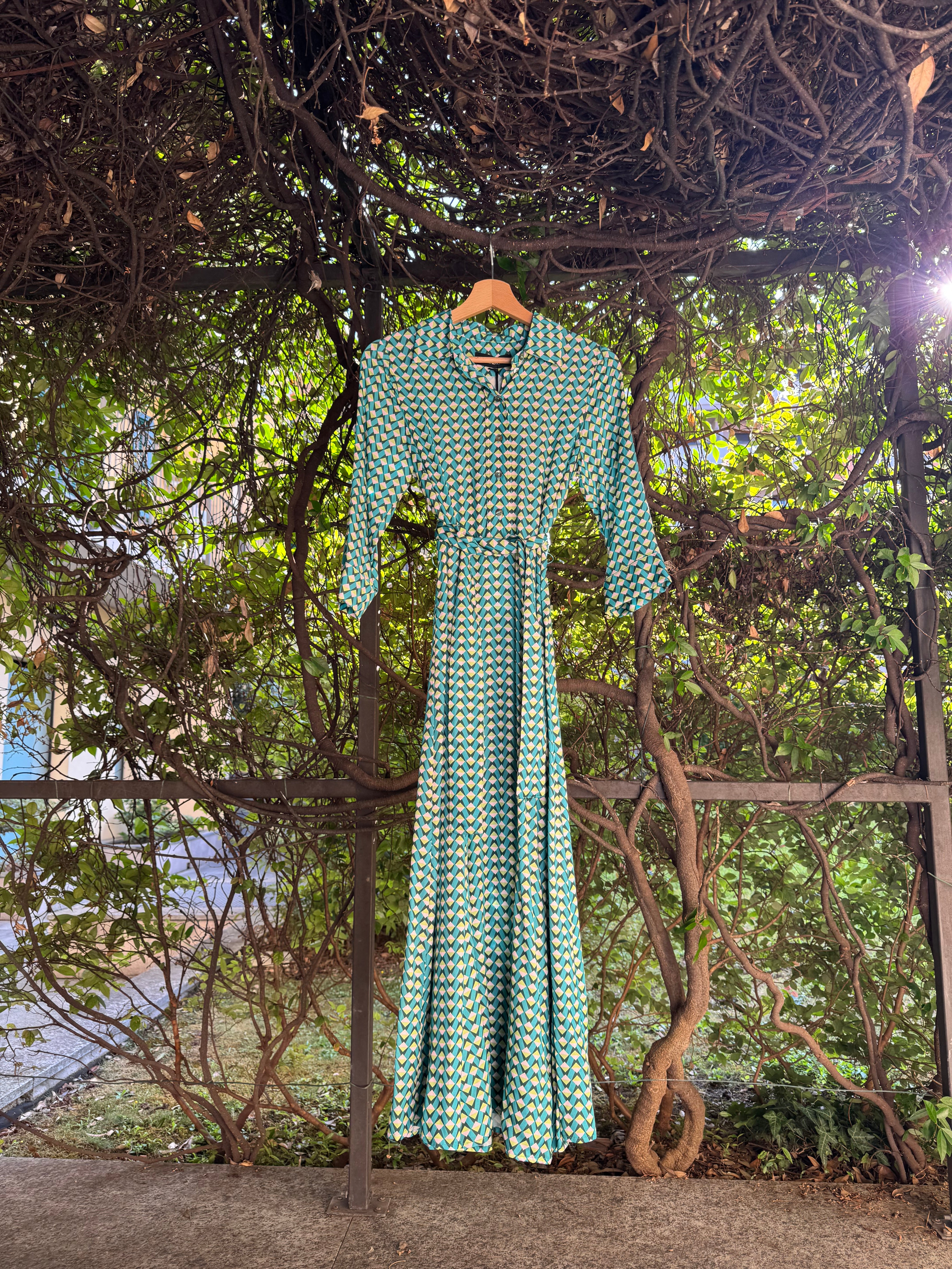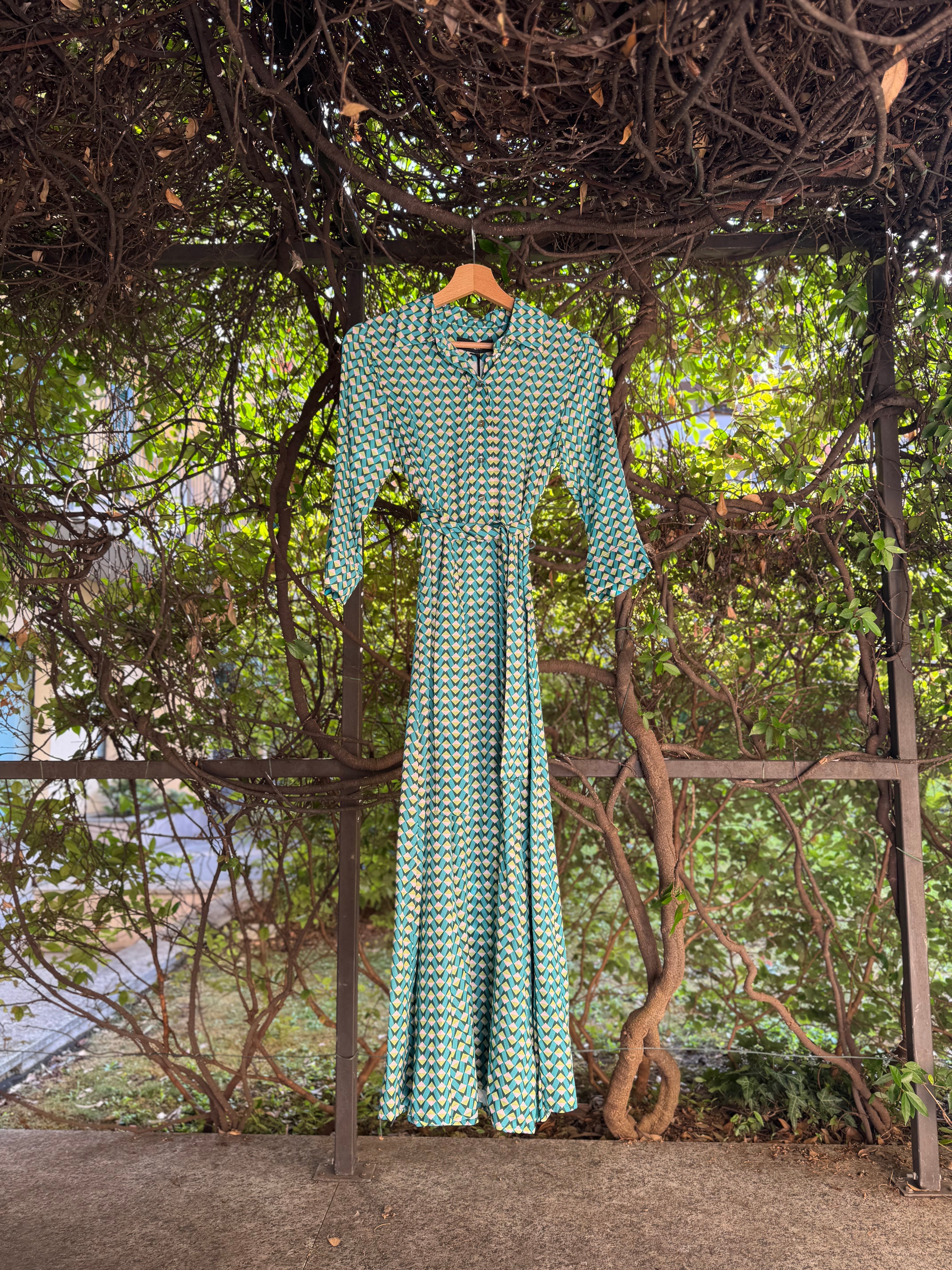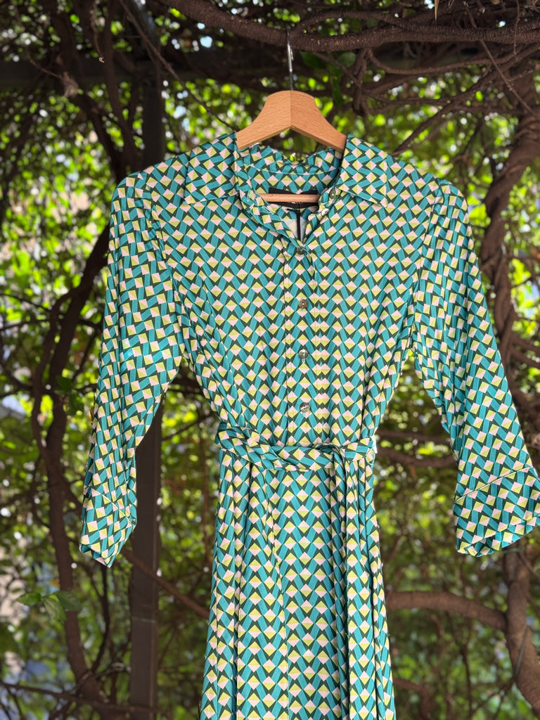 Abito chemisier in tessuto di viscosa stampata, con gonna svasata e cintura nello stesso tessuto