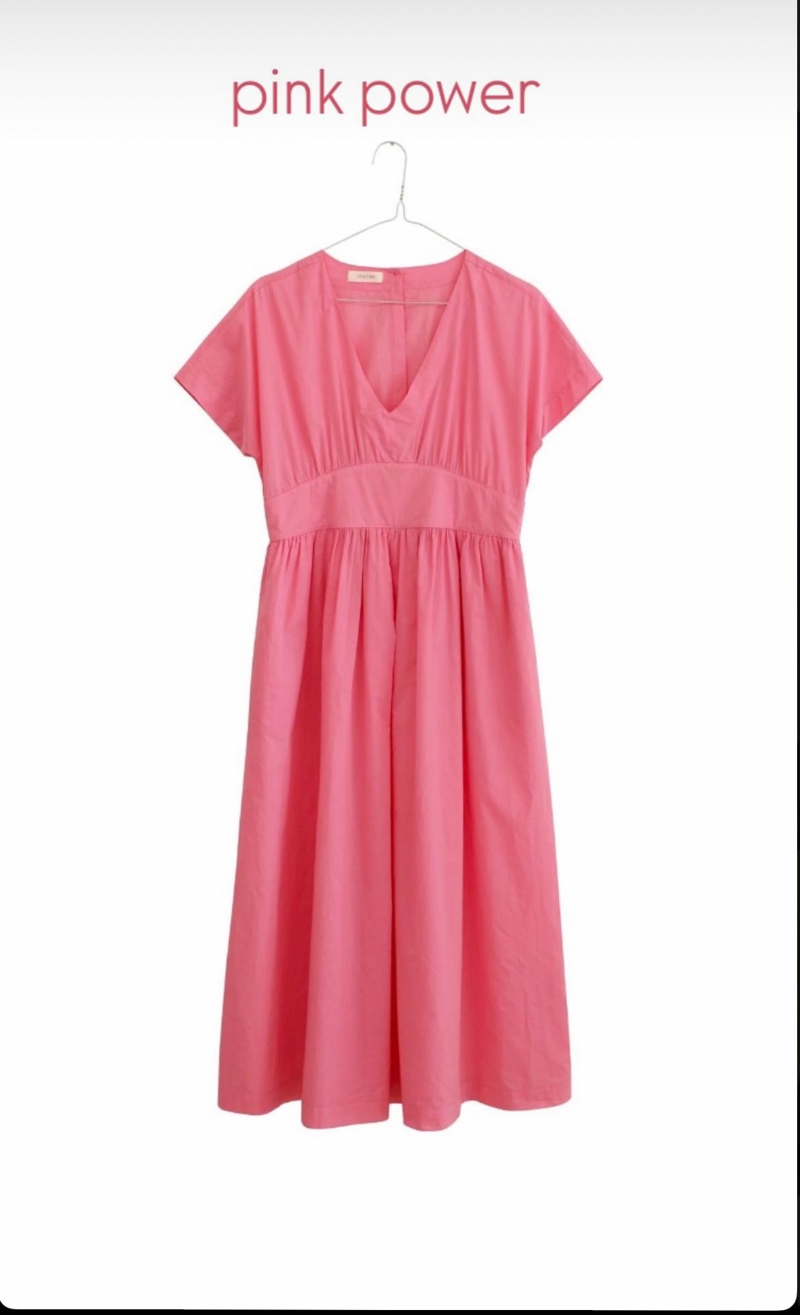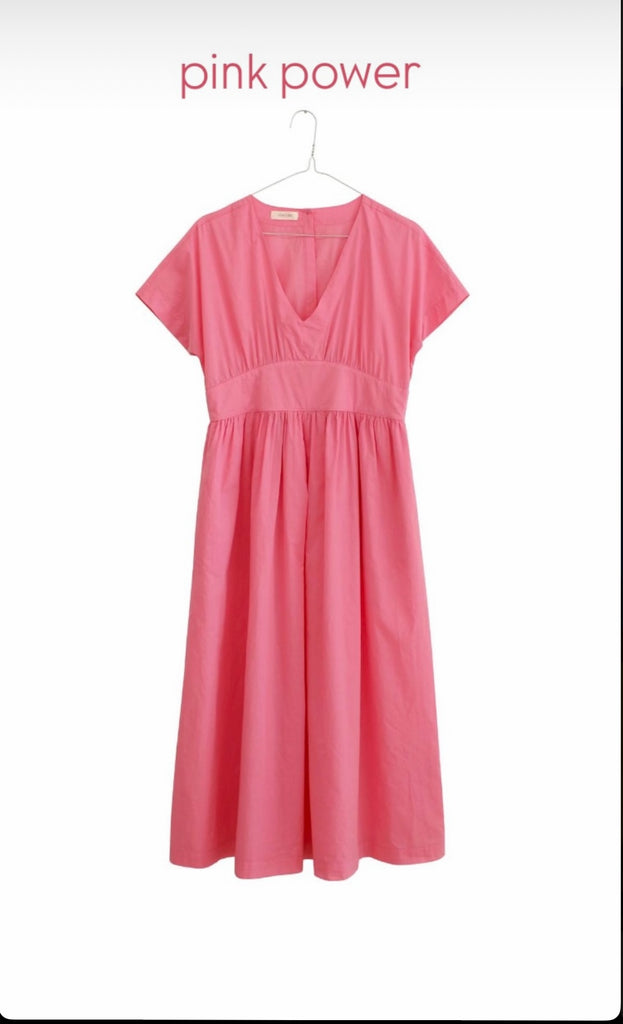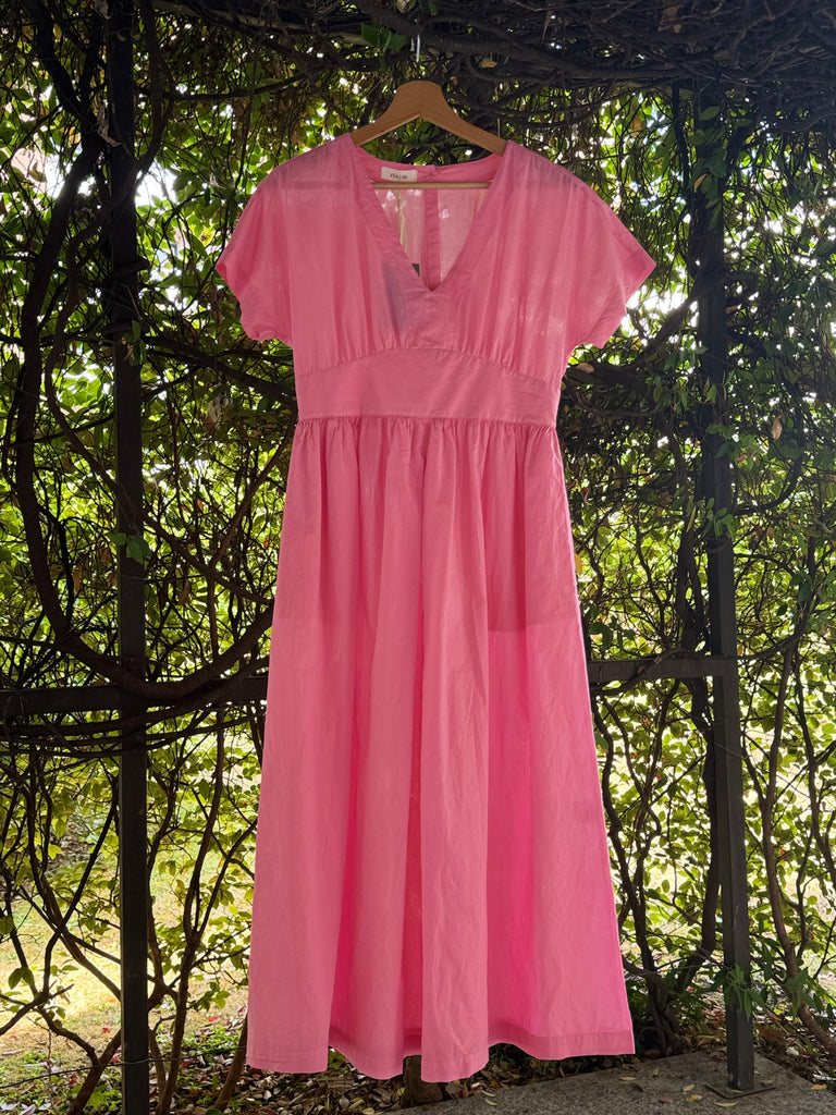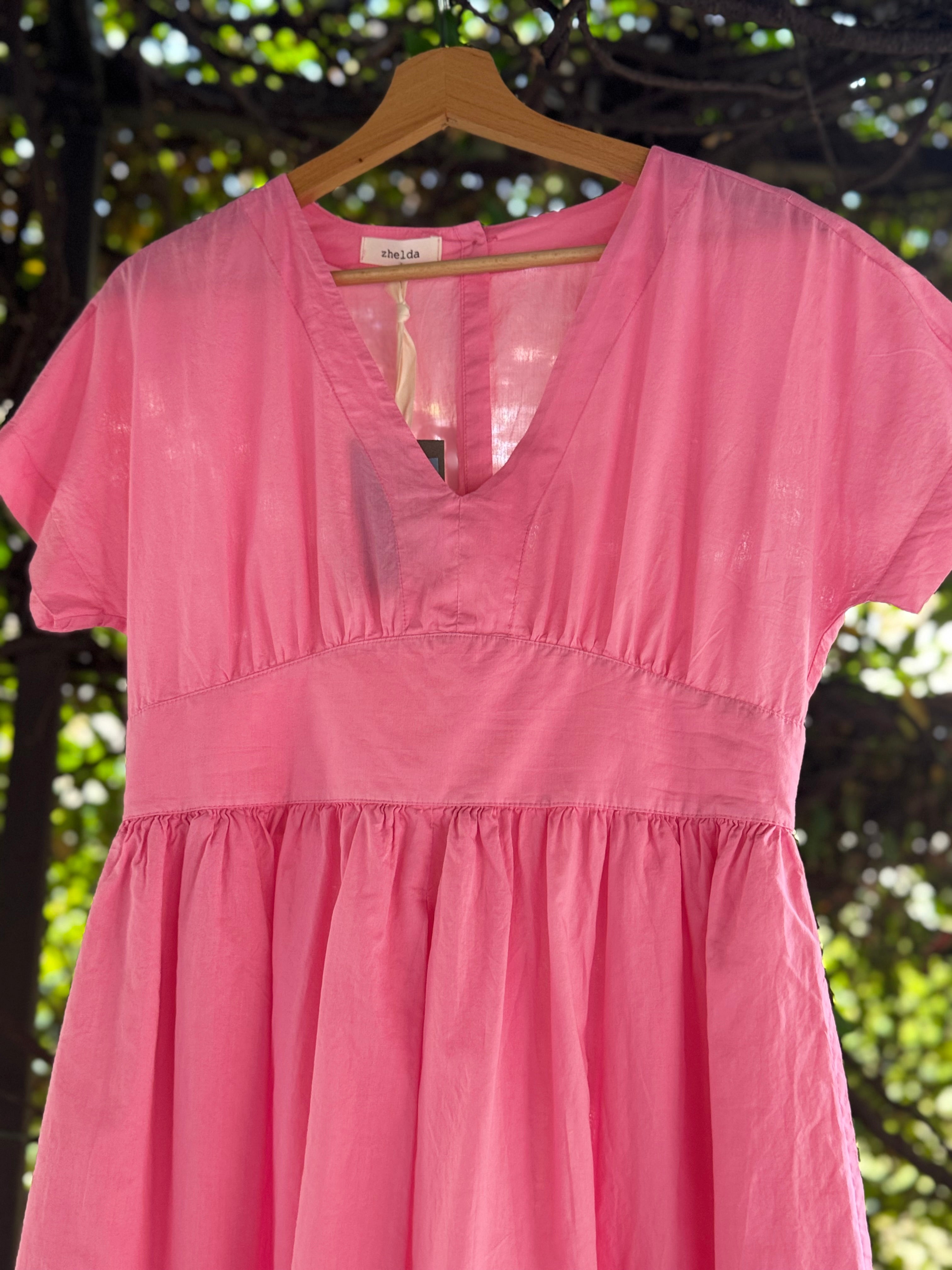 Abito svasato in popeline leggero estivo con piccola manica scesa, allacciatura doppia sulla schiena, tasche laterali. Made in Italy