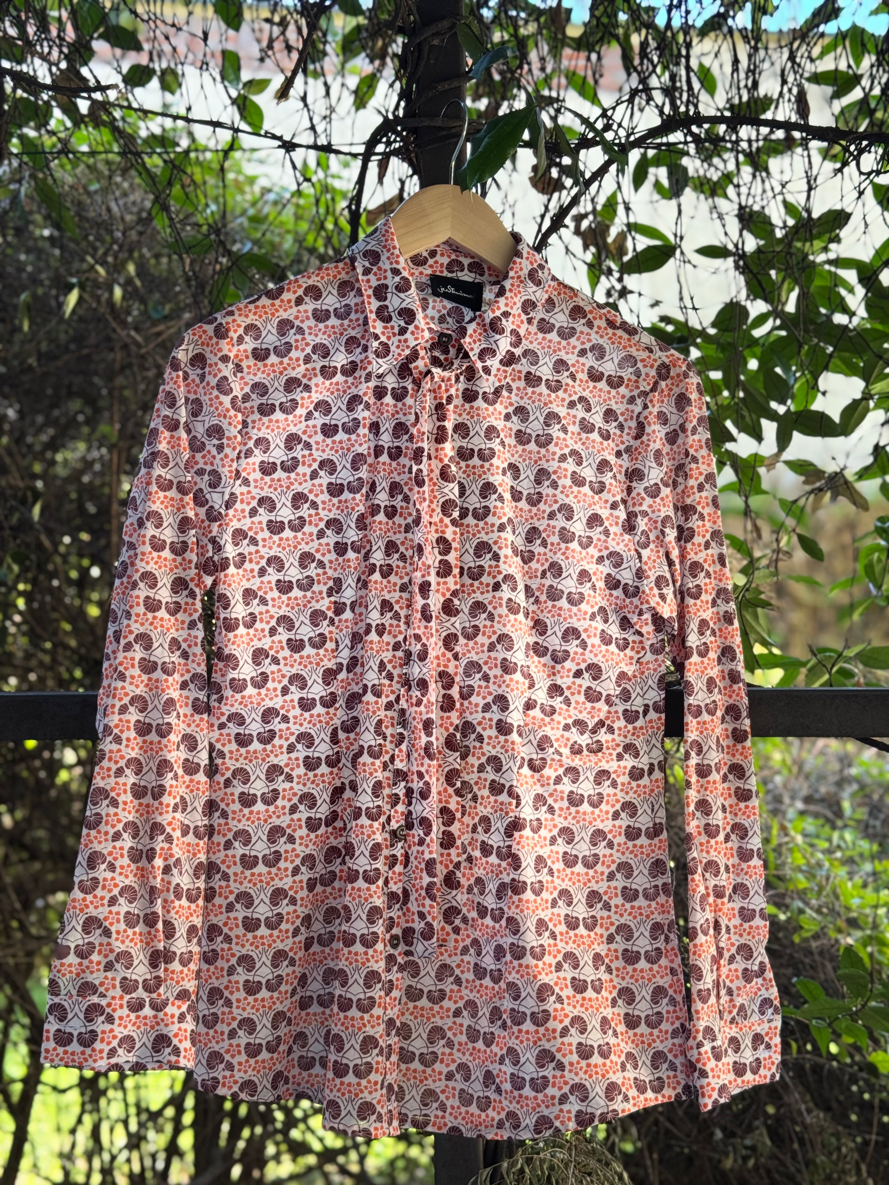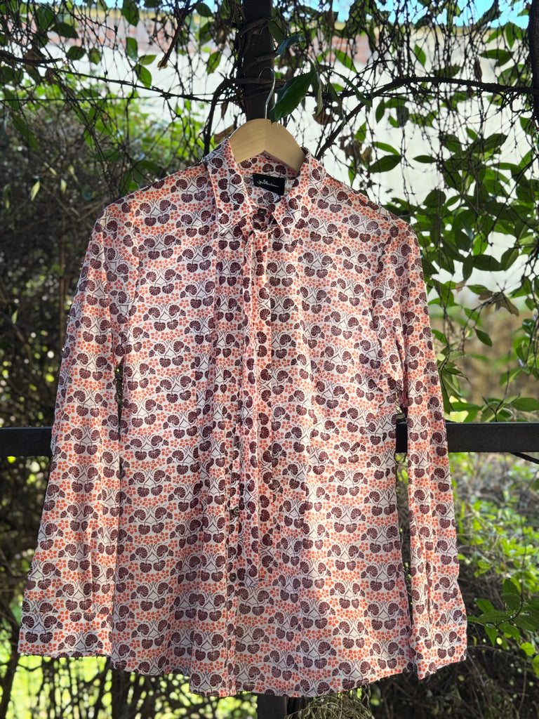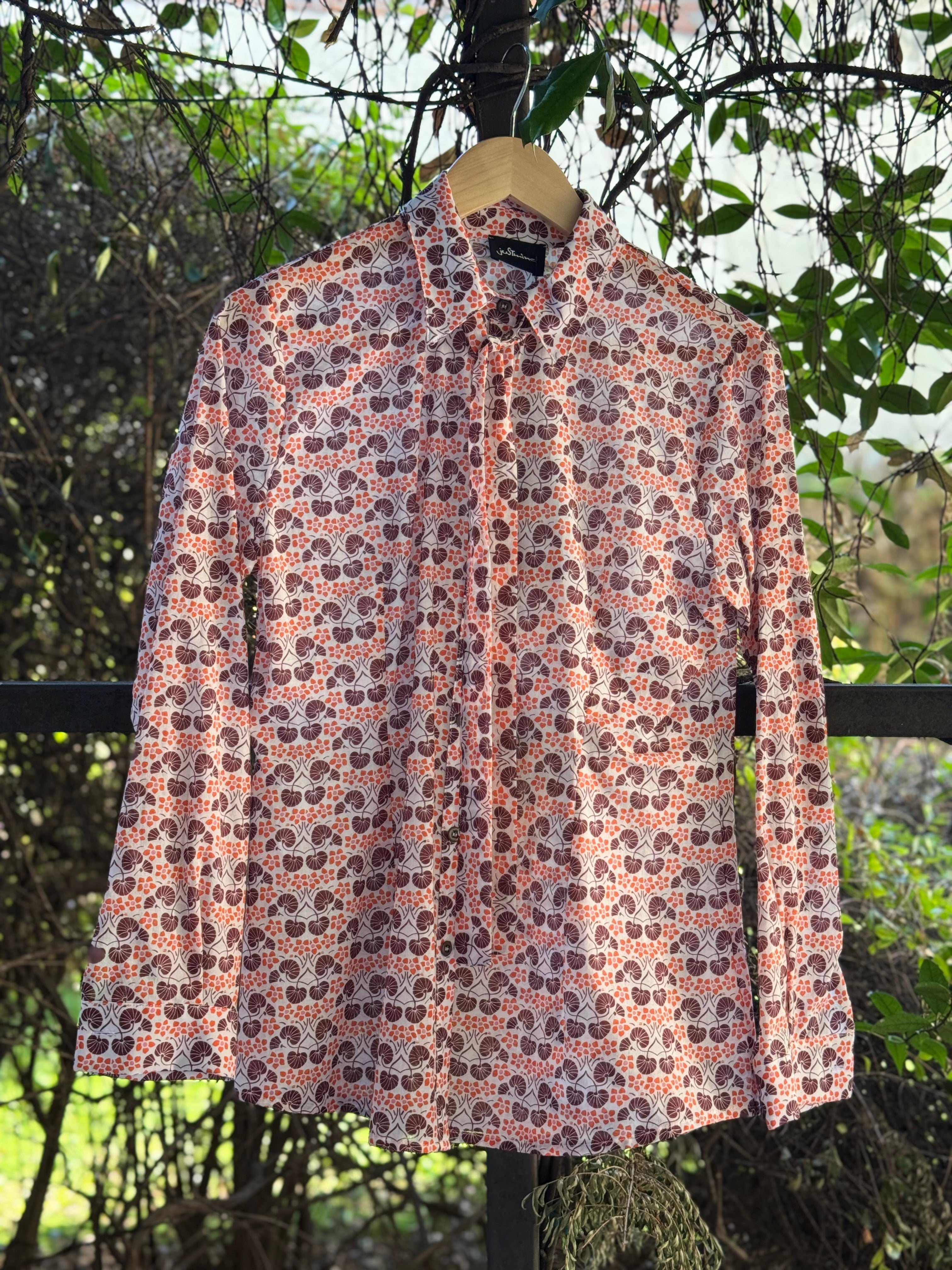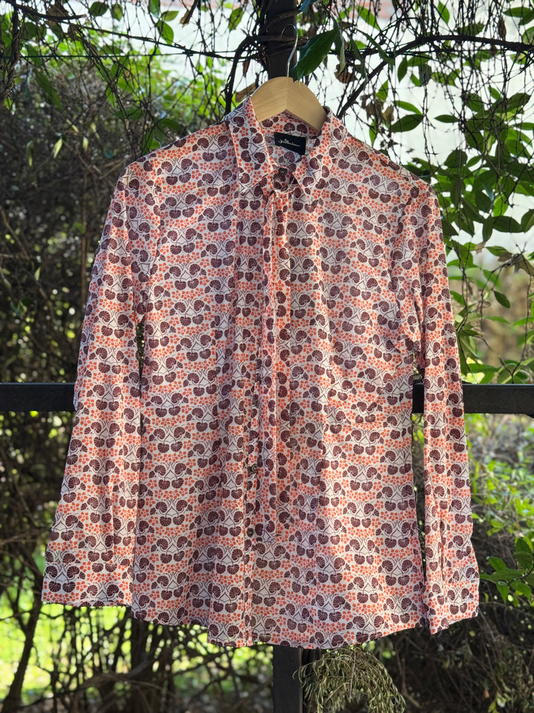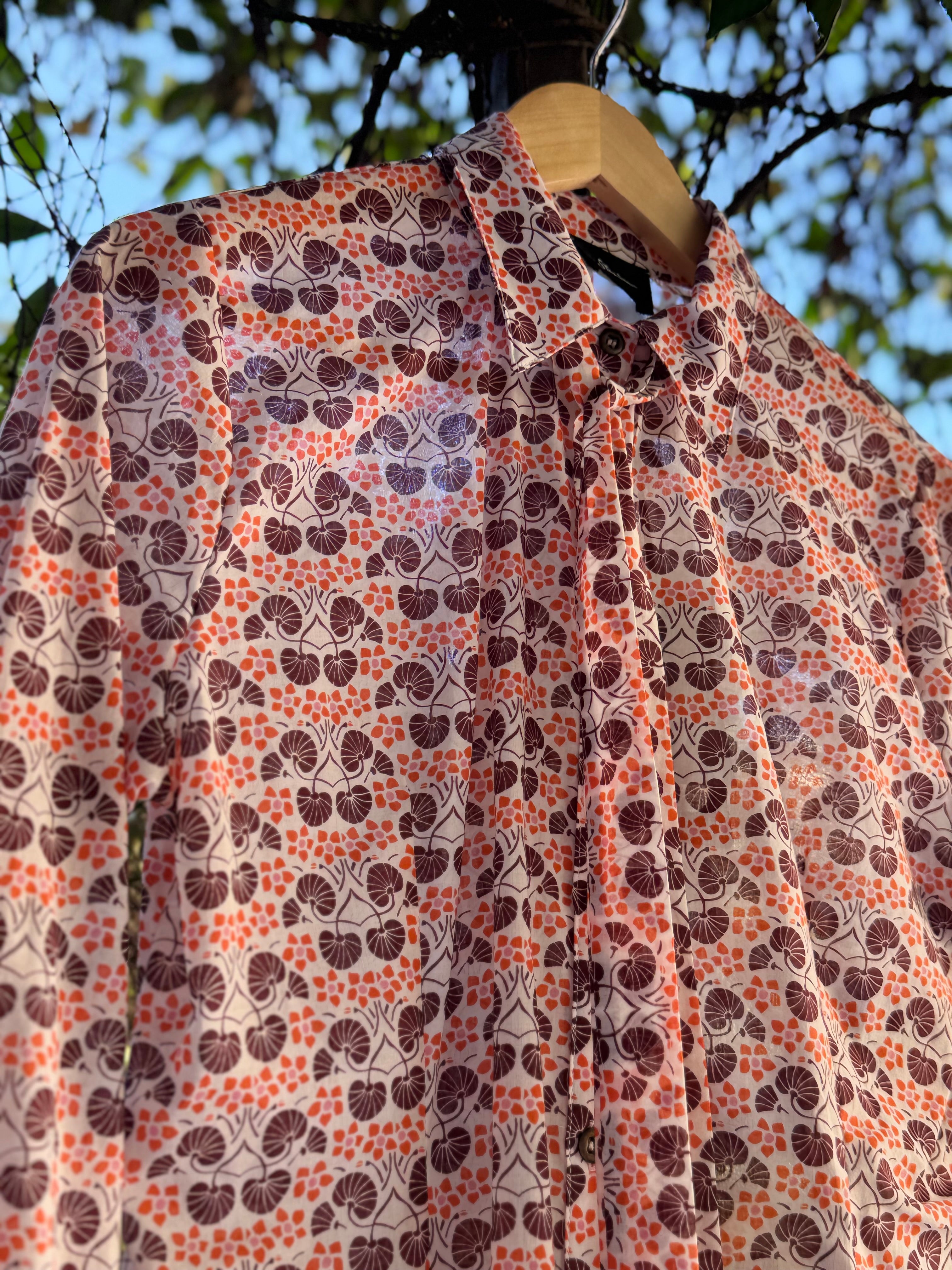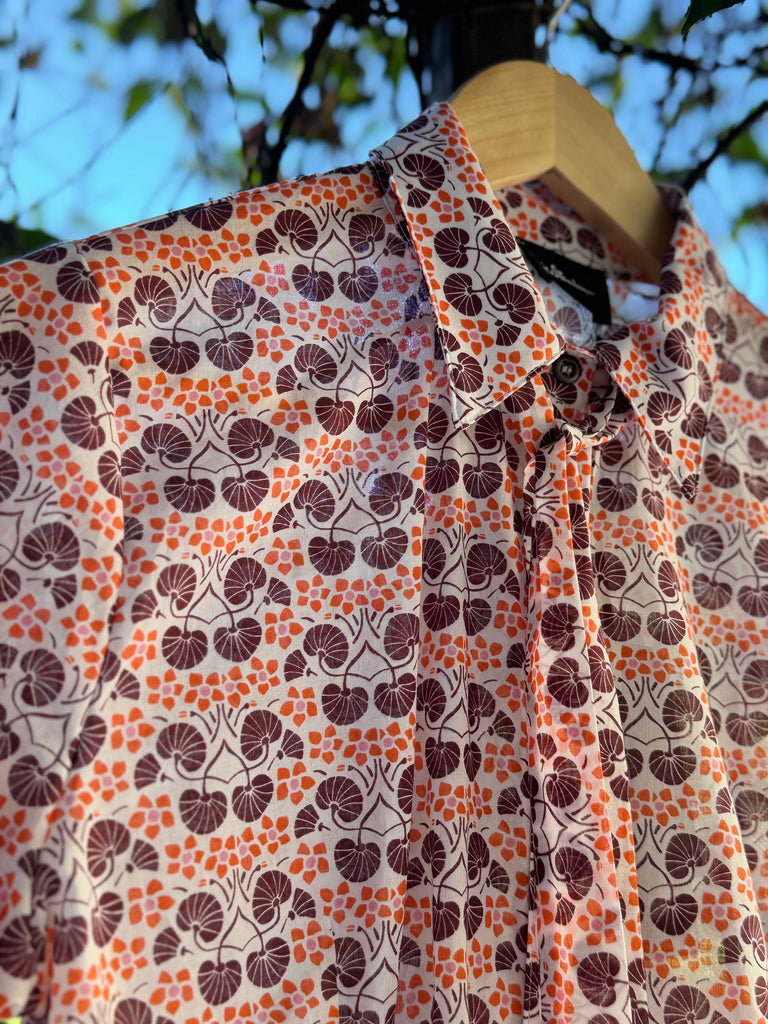 Camicia taglio uomo in cotone leggero stampato, con nastrino sul collo che si può rimuovere.
