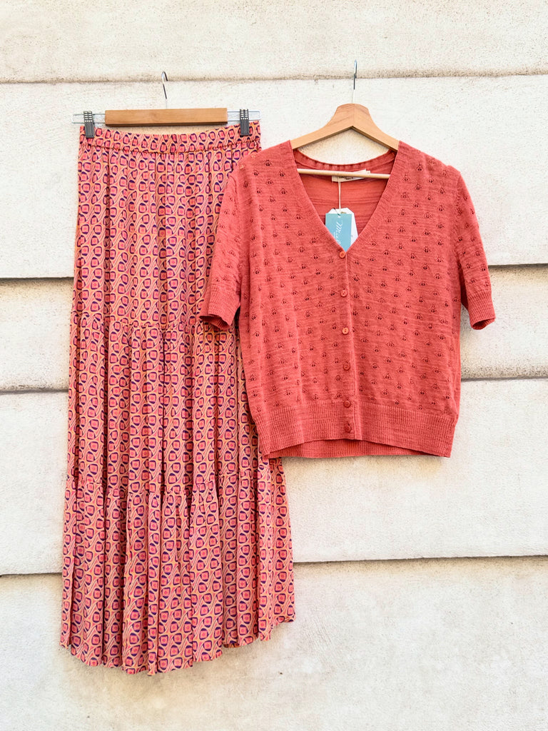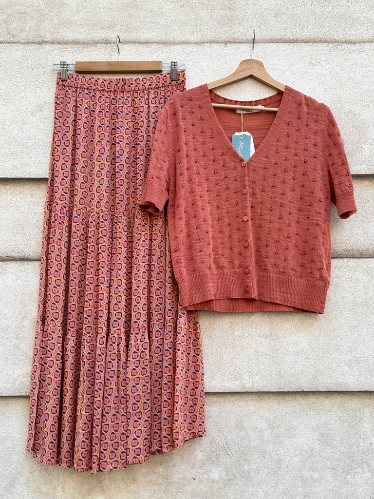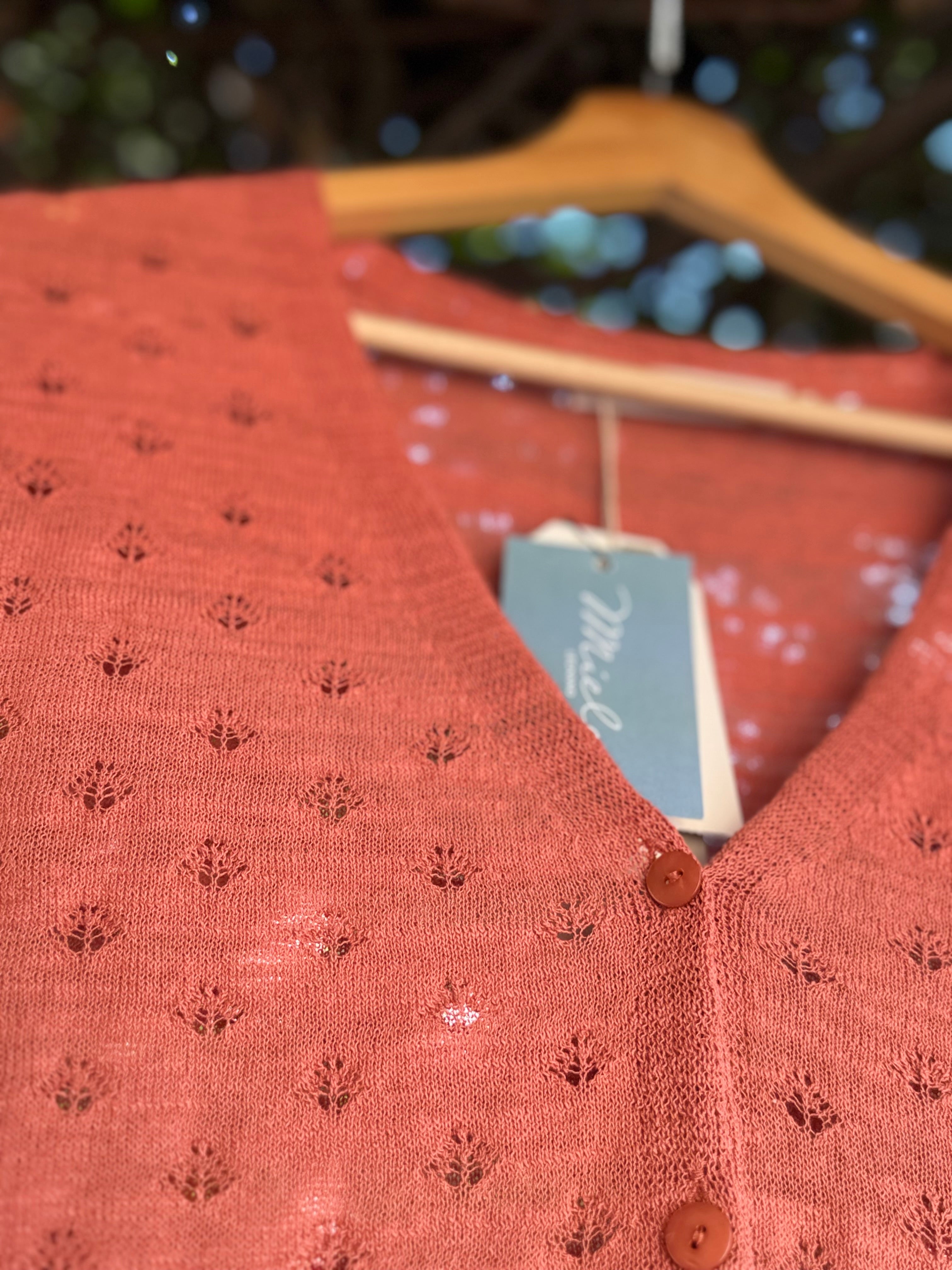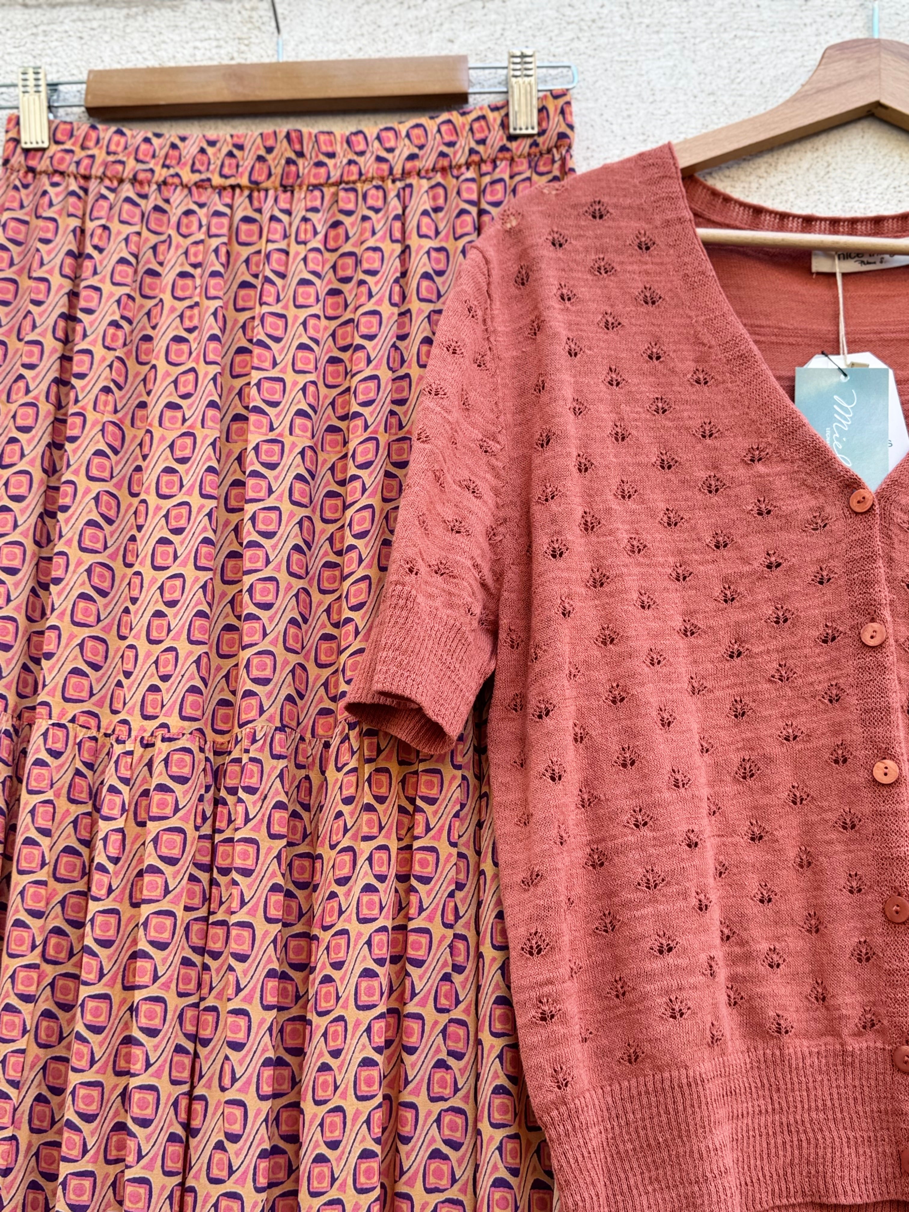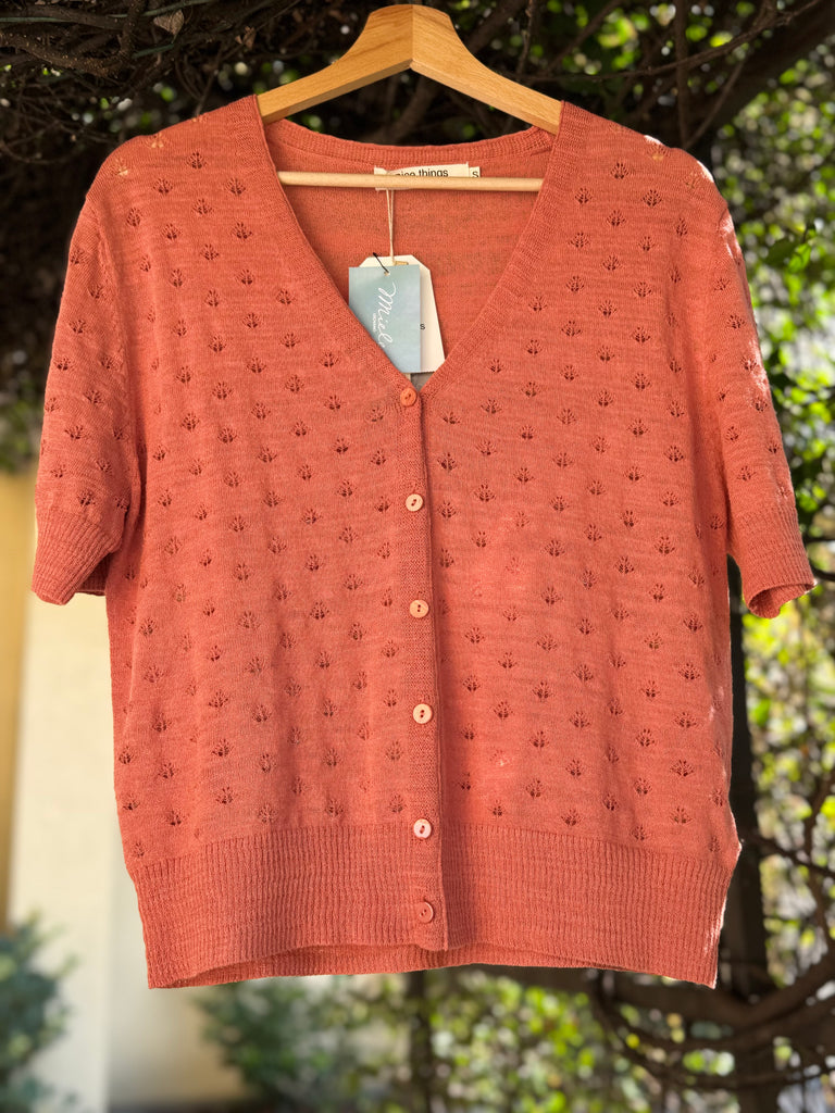Maglia cardigan in filo di cotone 100% con maniche corte, motivo traforato