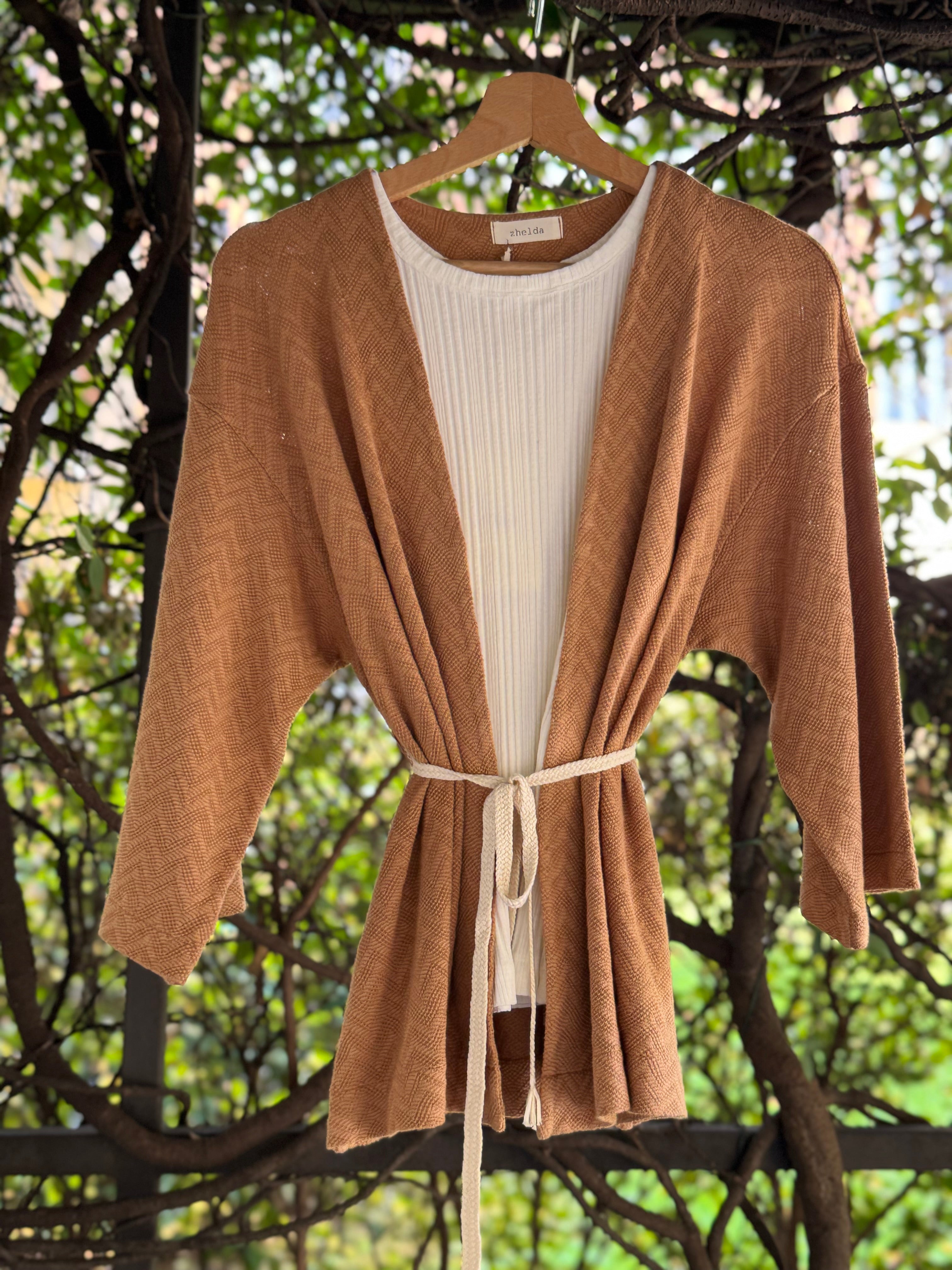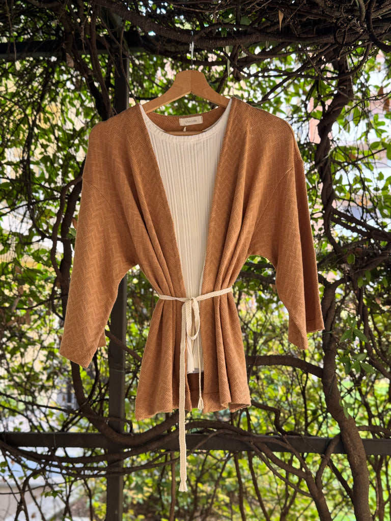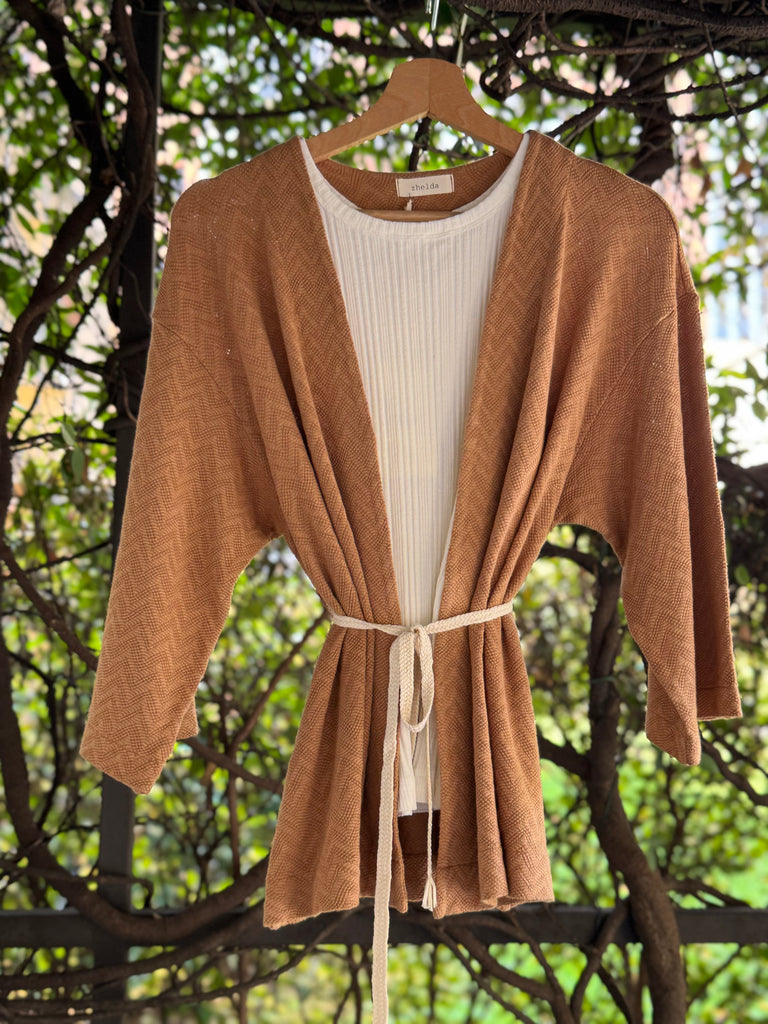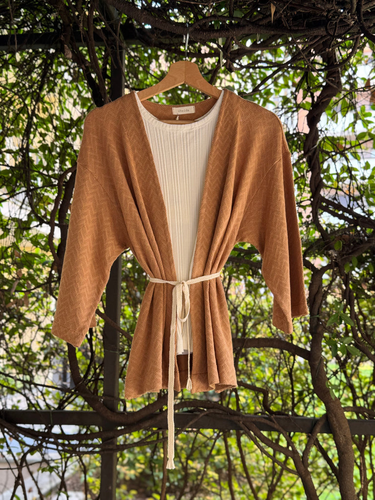 Maglia incrociata in cotone lavorato con maniche a trapezio al gomito. Made in Italy