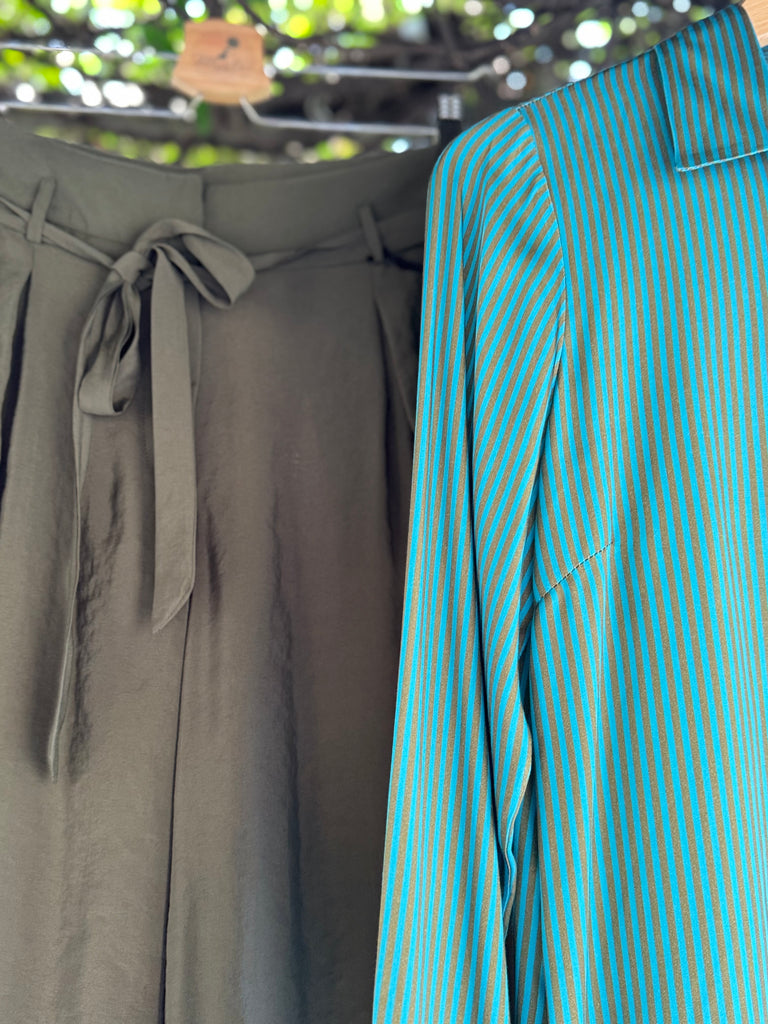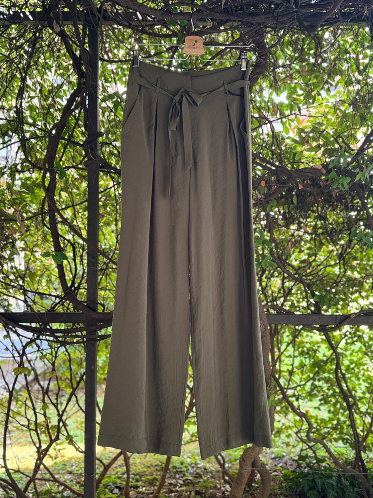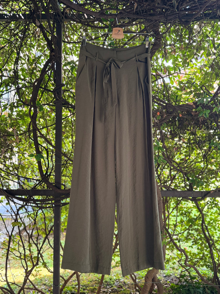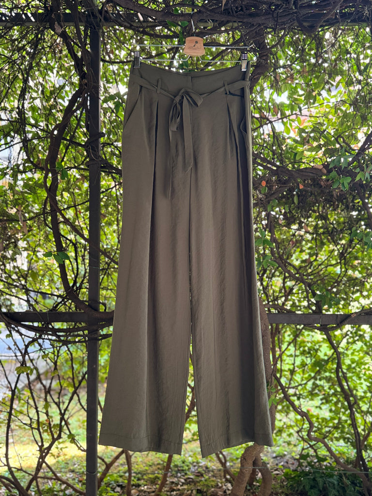 Pantaloni ampi a palazzo in leggero tessuto di viscosa, a vita alta con cinturina in vita, pences piatte, tasche laterali Made in Italy
