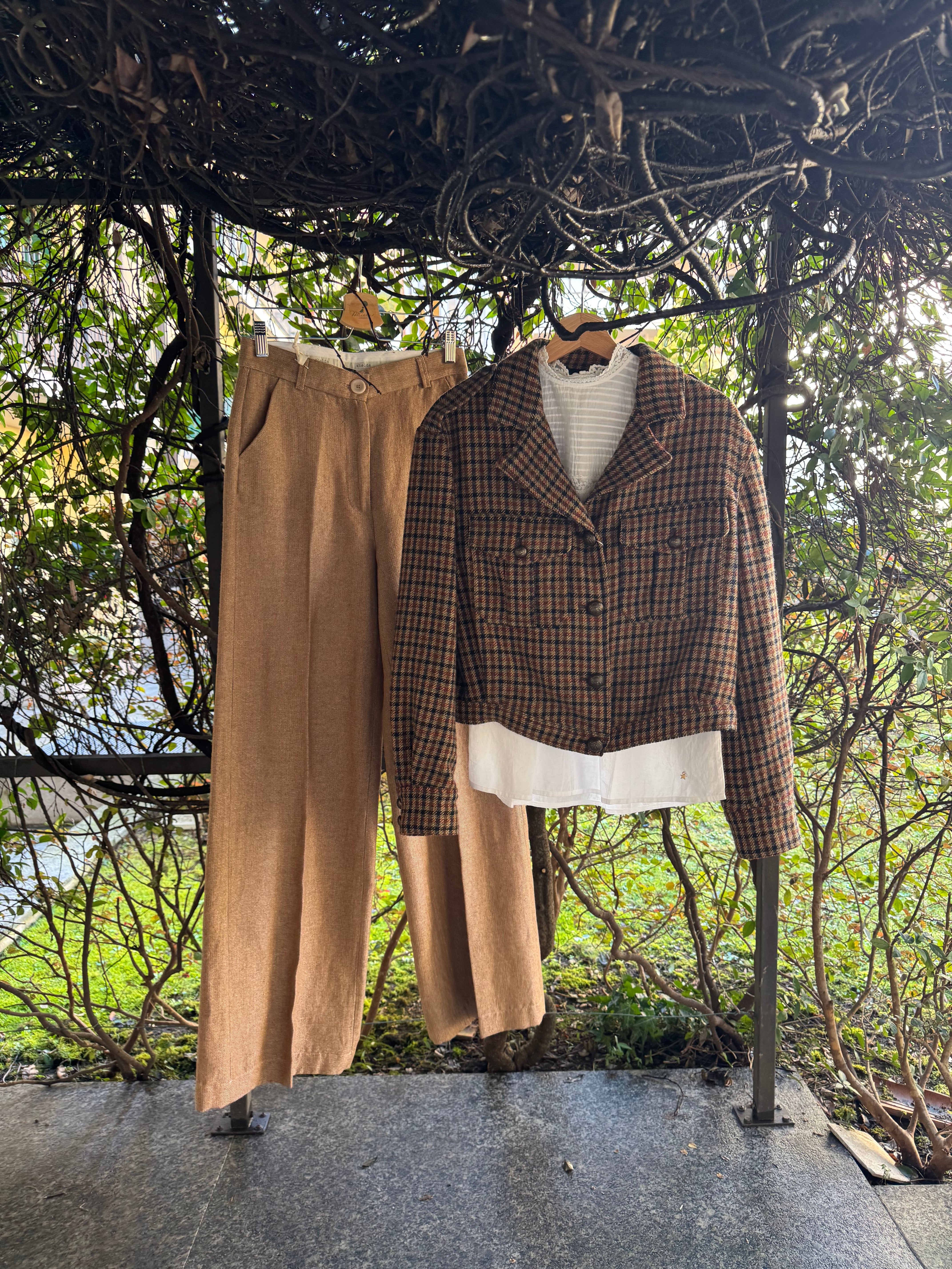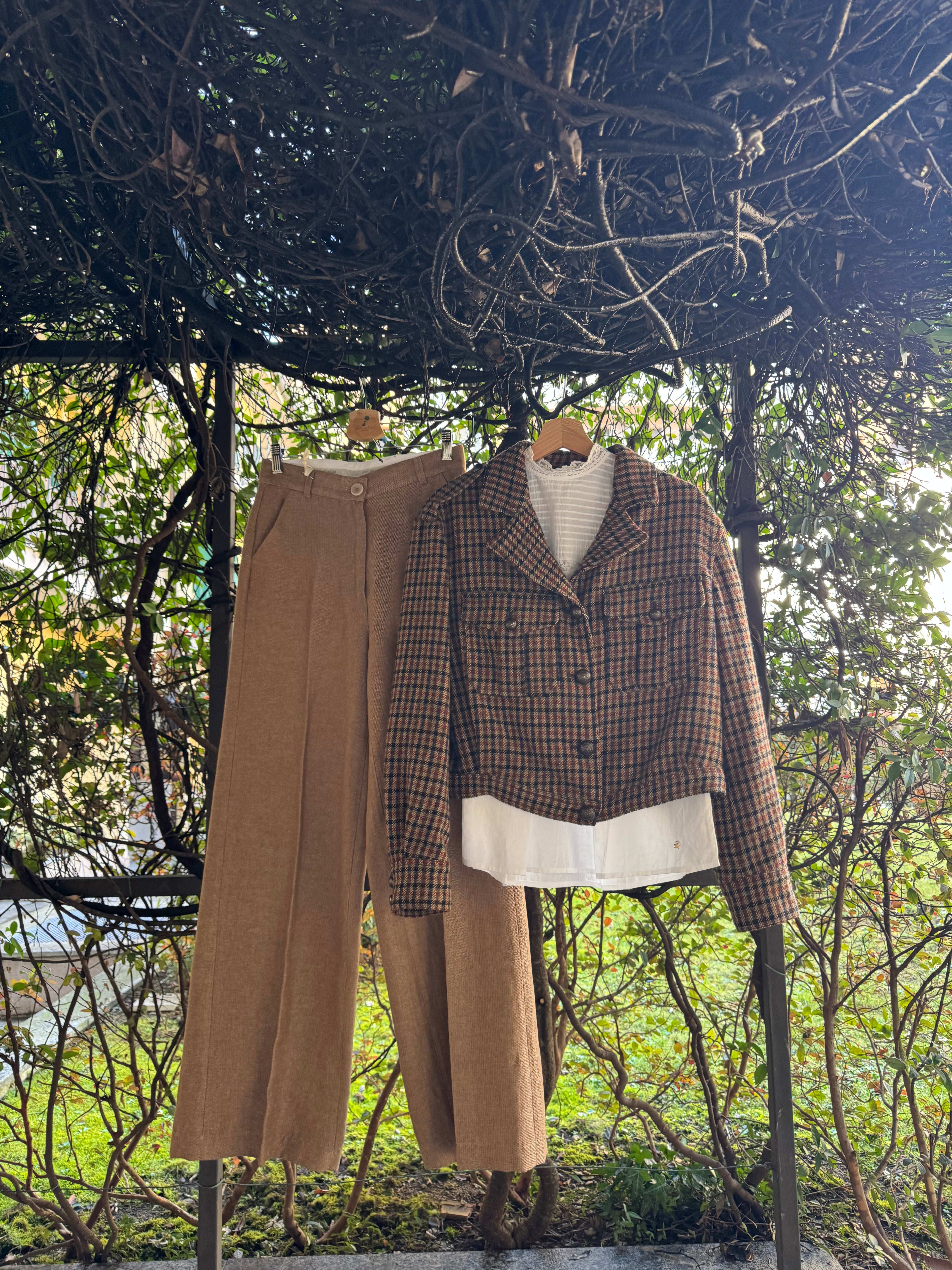 33% lana, 23% lino flax, 18% cotone, 14% viscosa, 12% altre fibre lurex