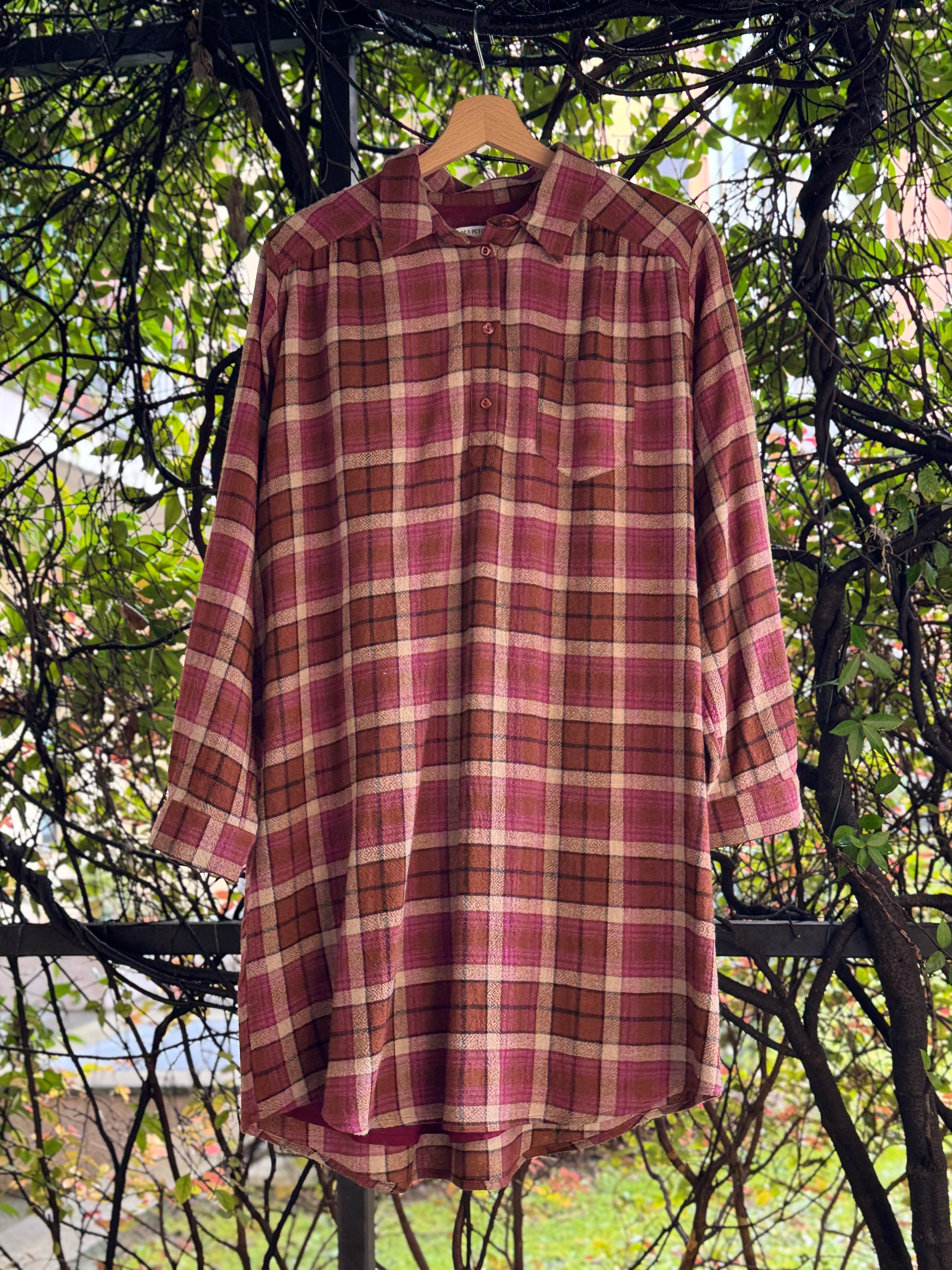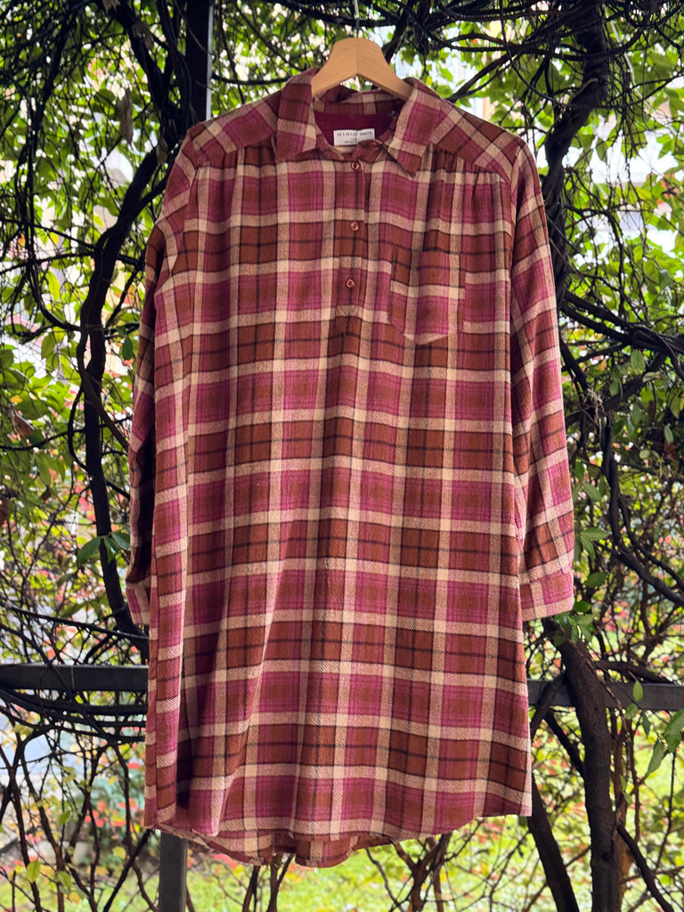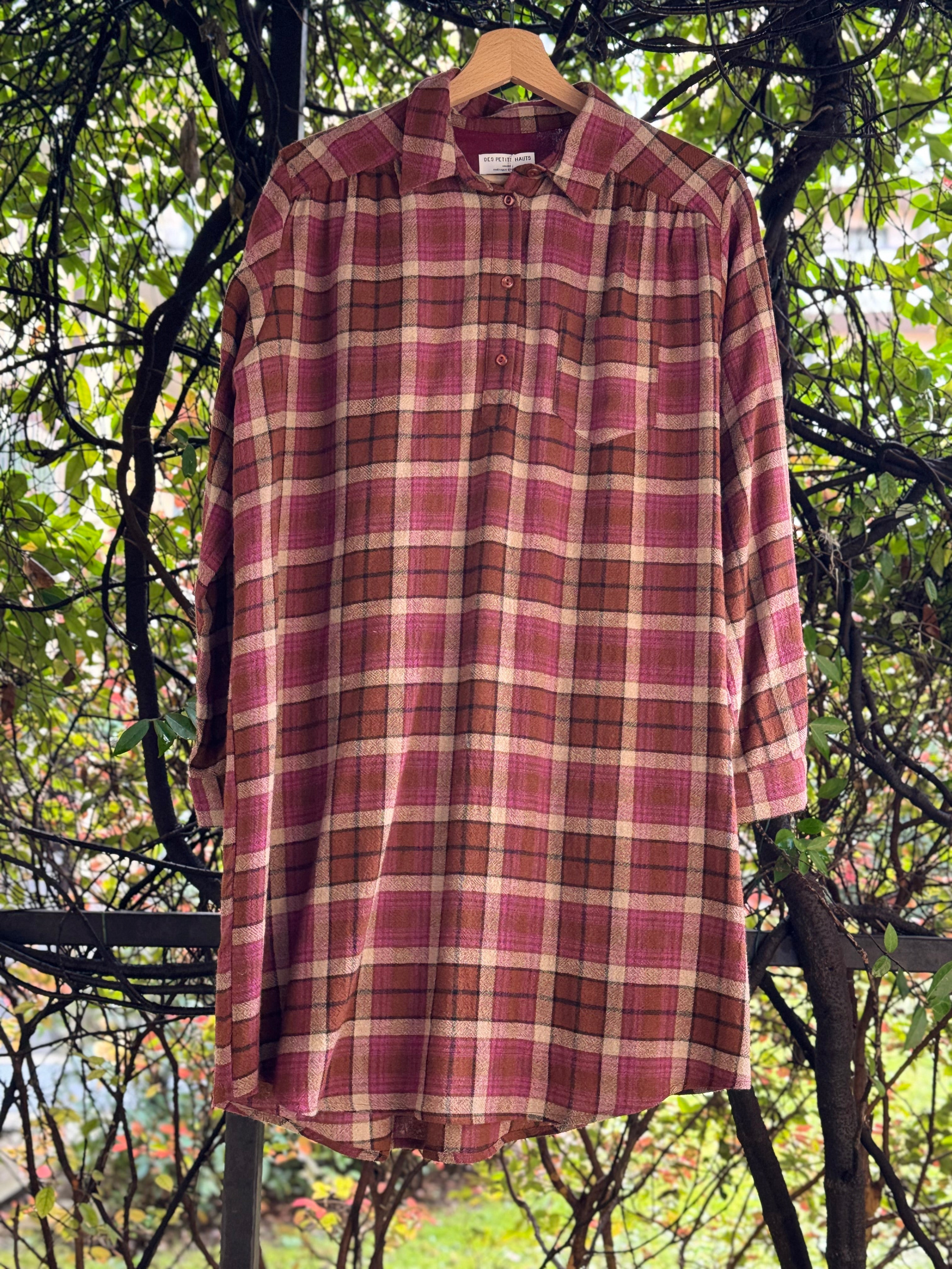 Abito in tessuto di viscosa 60% e lana 40% al ginocchio taglio ampio a camicia
