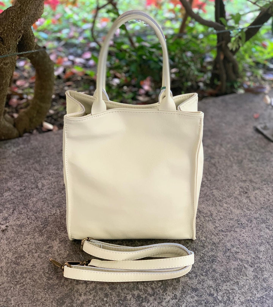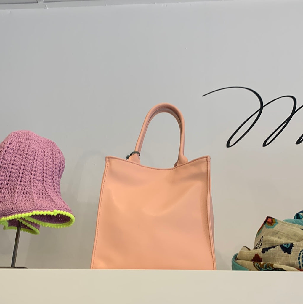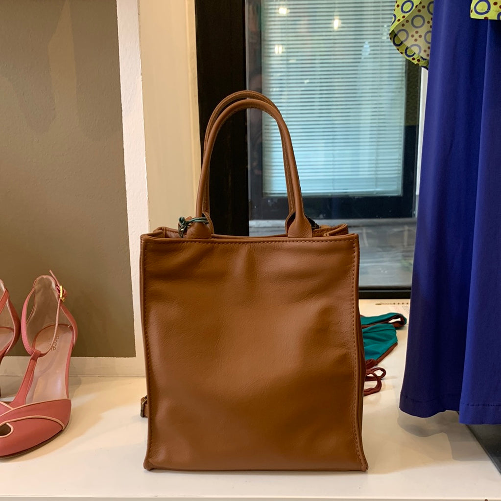 Shopper piccola in vera pelle, da portare a mano o con la pratica tracolla in pelle abbinata