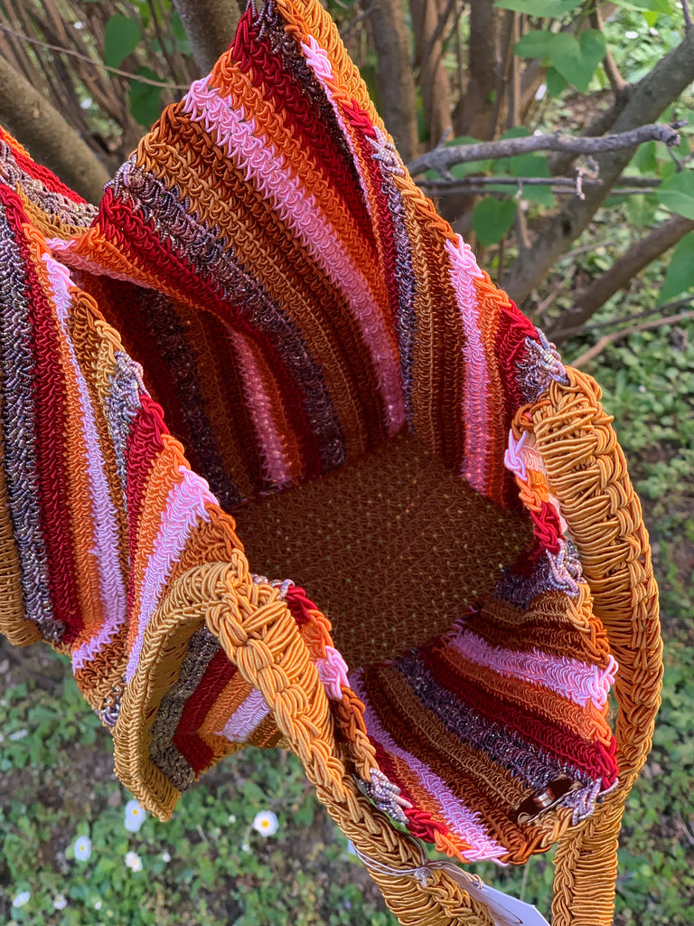 Borsa in cotone cerato e lurex realizzata in modo artigianale, Made in Italy