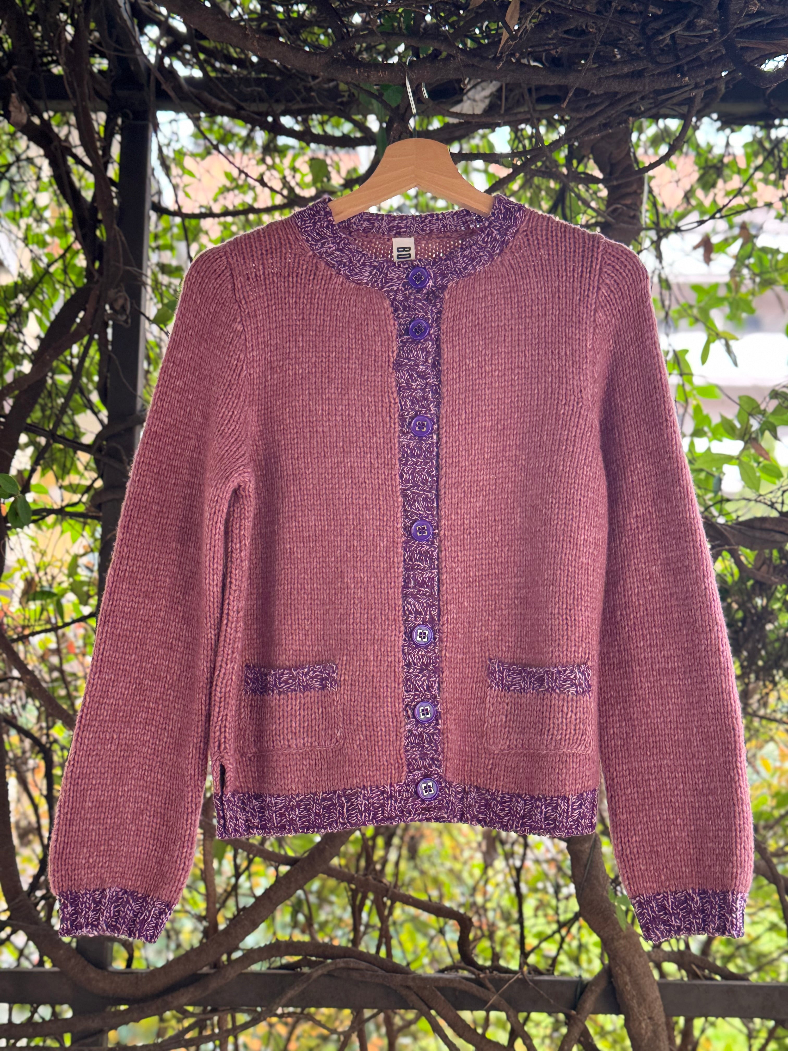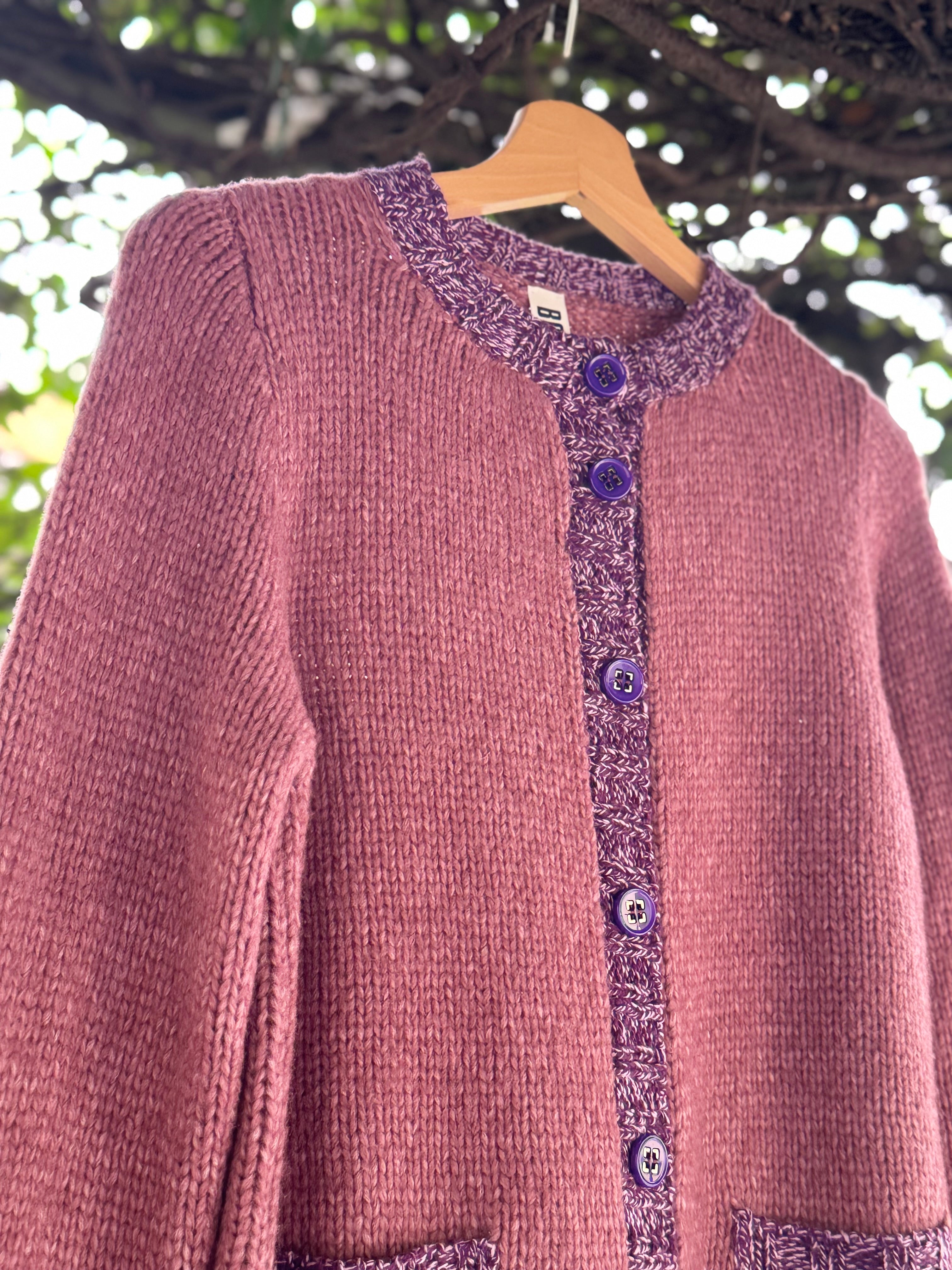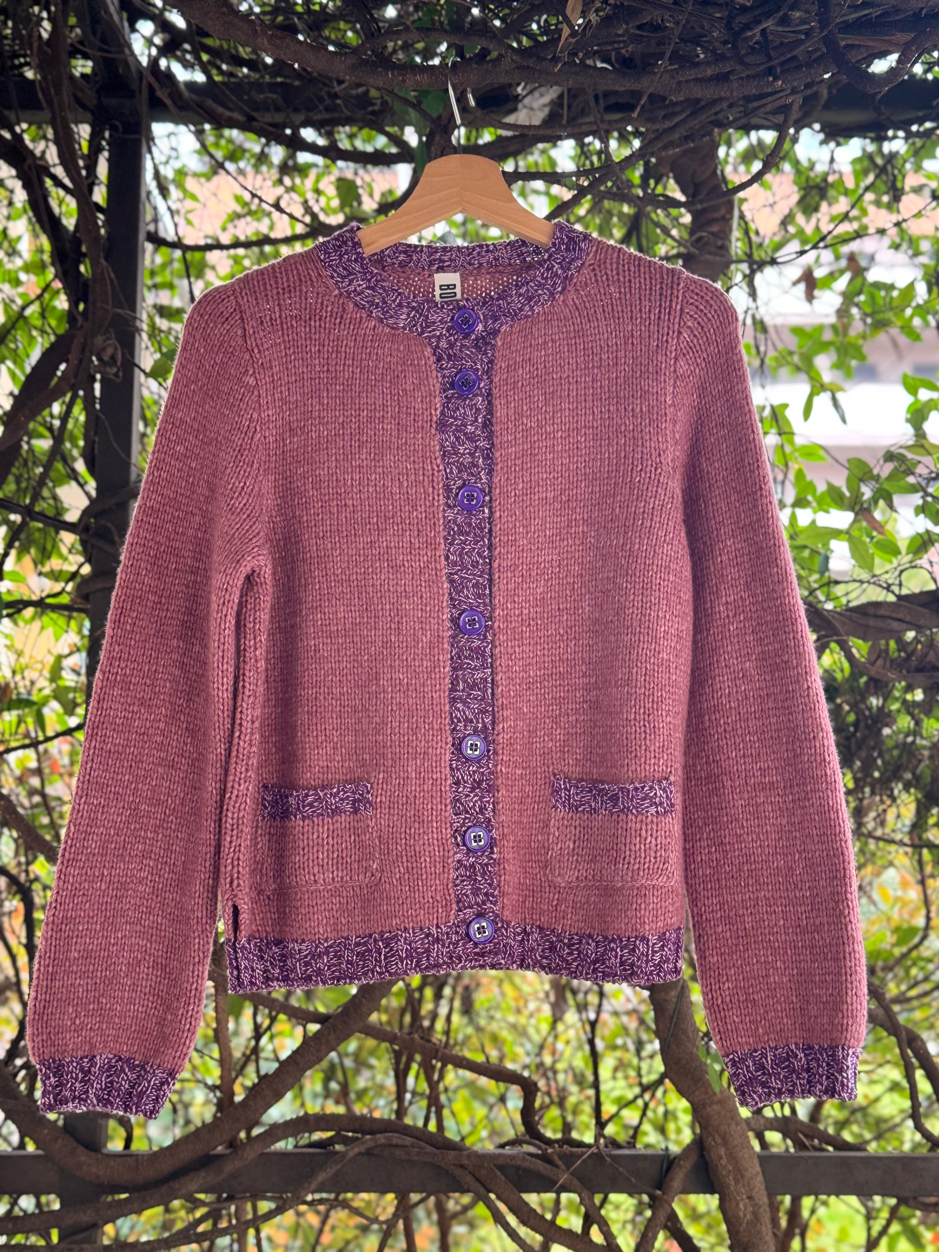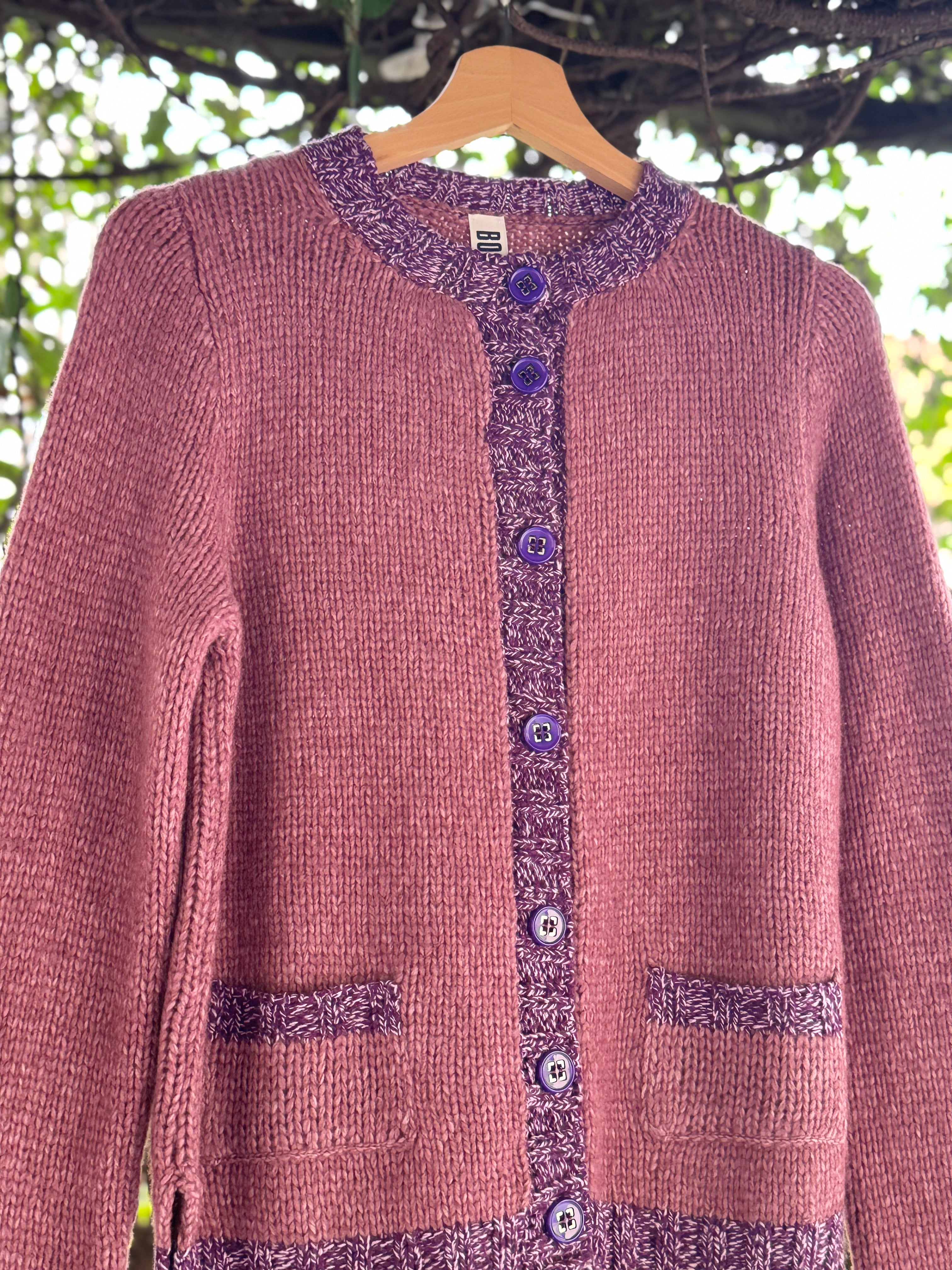 cardigan a girocollo in lana merino con bordi in lana mélange a contrasto