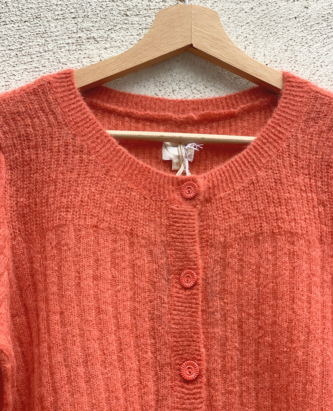 Maglia a cardigan con scollo tondo e ampie maniche a sbuffo
