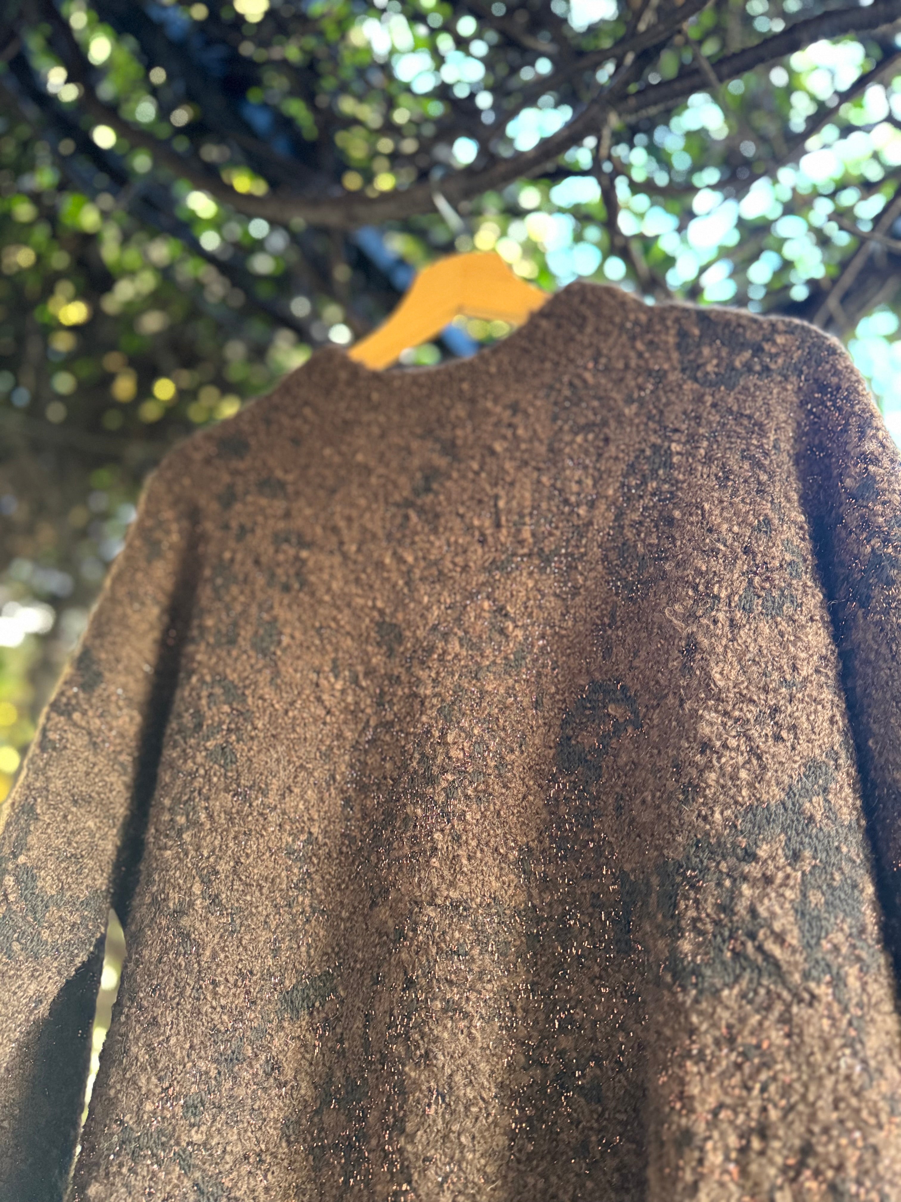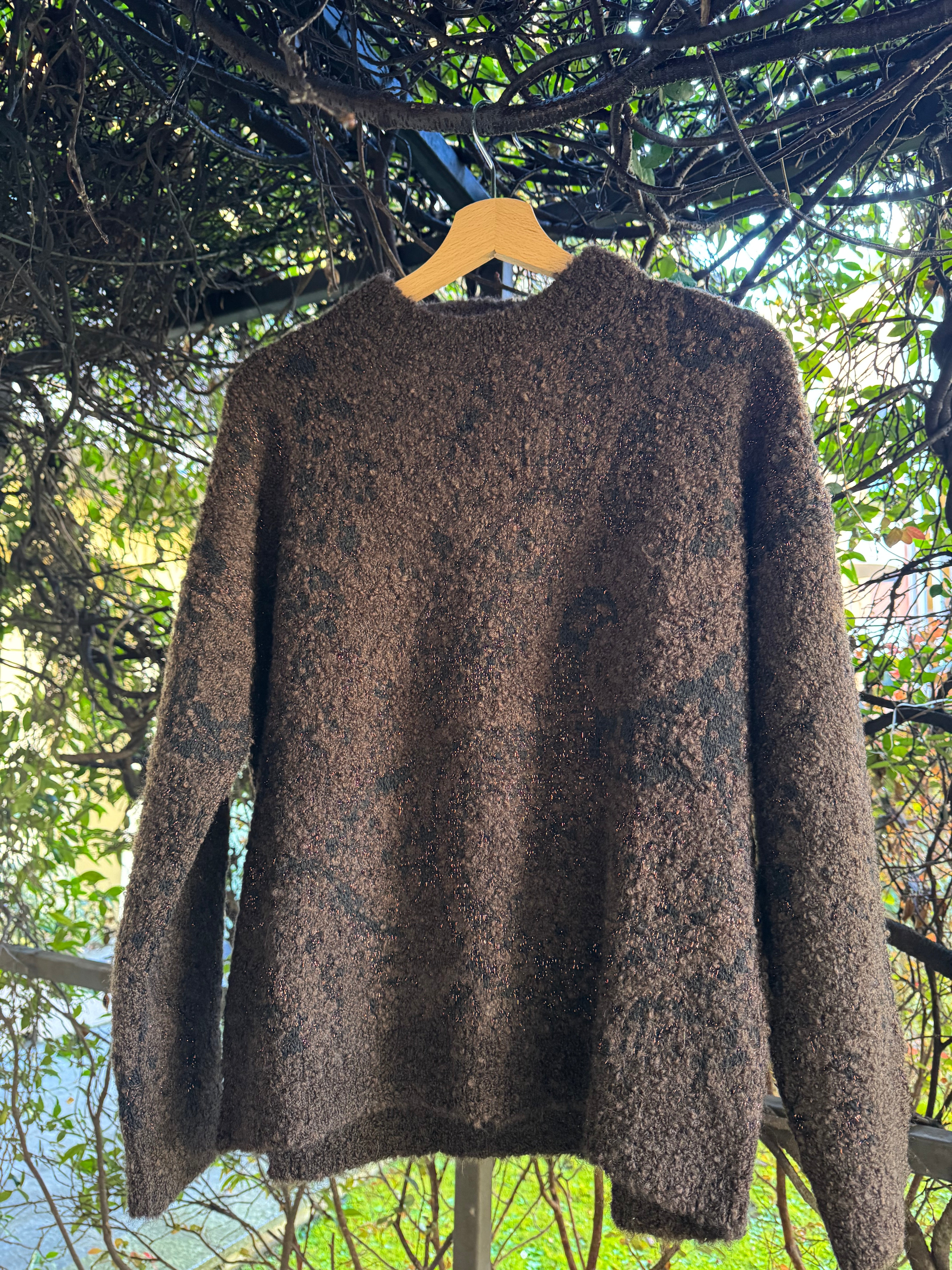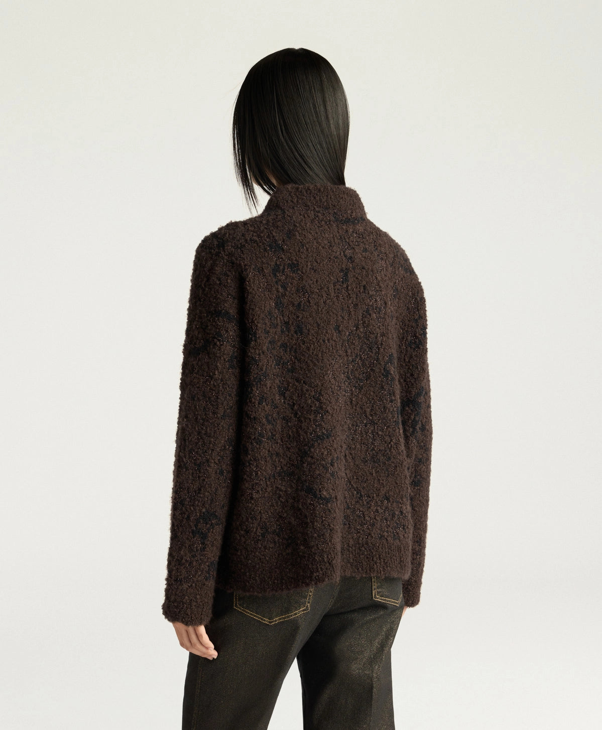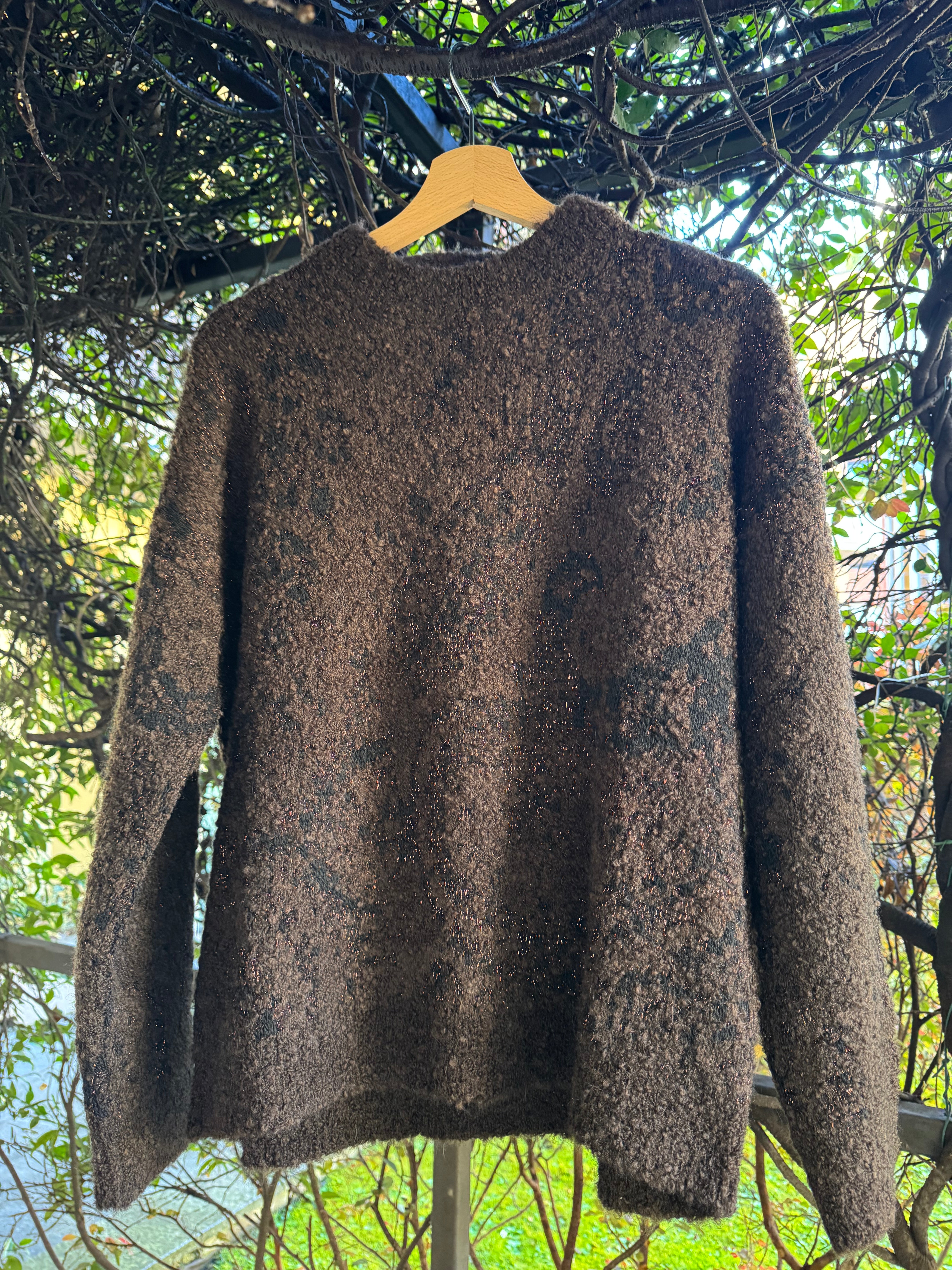 Maglione girocollo over in maglia jaquard di mix filati bouclè e lurex con motivo maxi-paisley. Made in Italy.