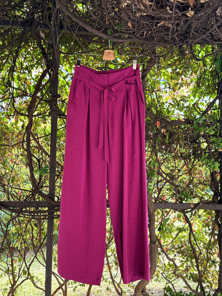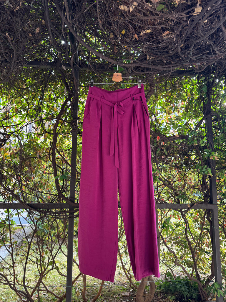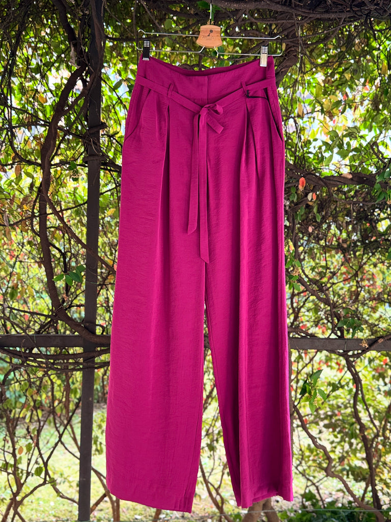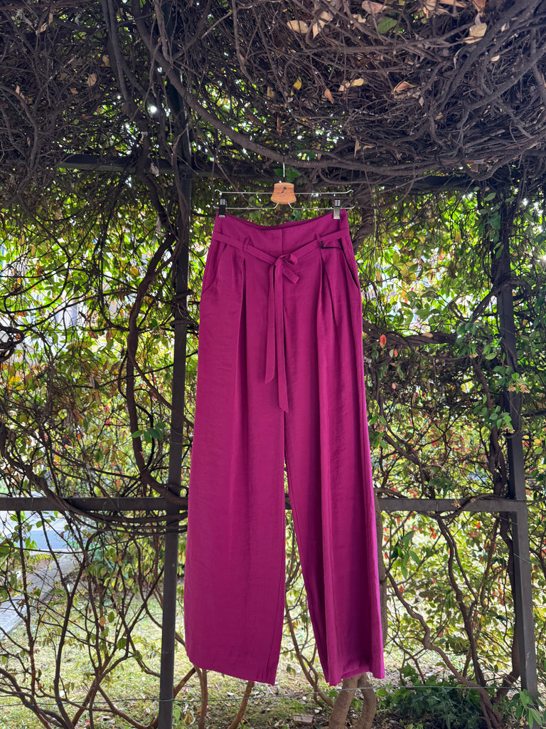 Pantaloni ampi a palazzo in leggero tessuto di viscosa, a vita alta con cinturina in vita, pences piatte, tasche laterali Made in Italy