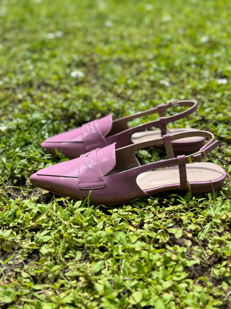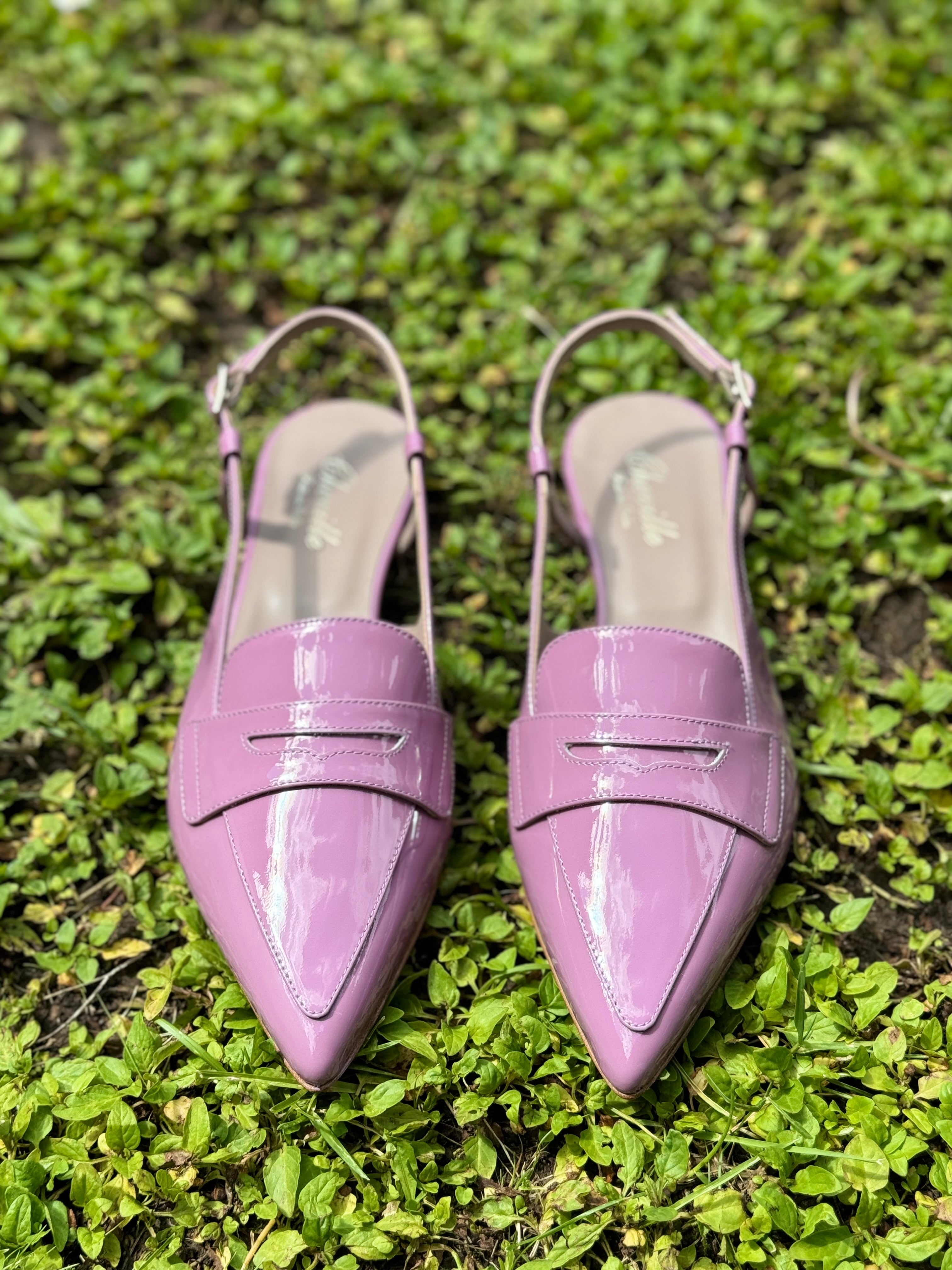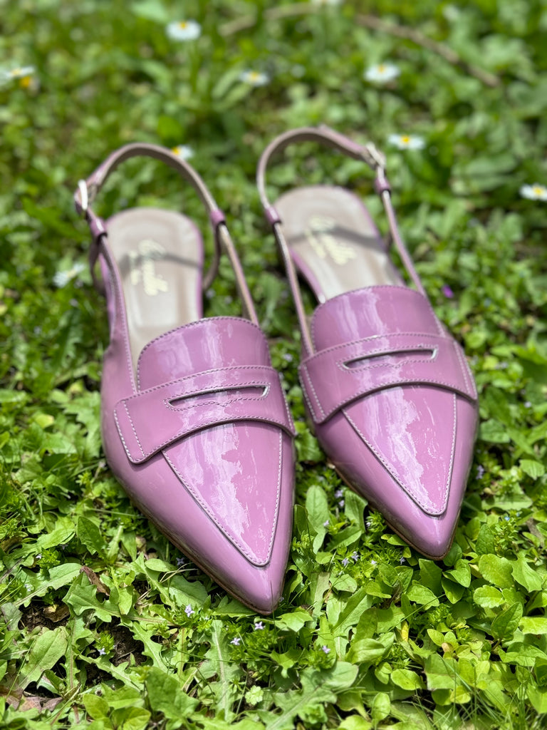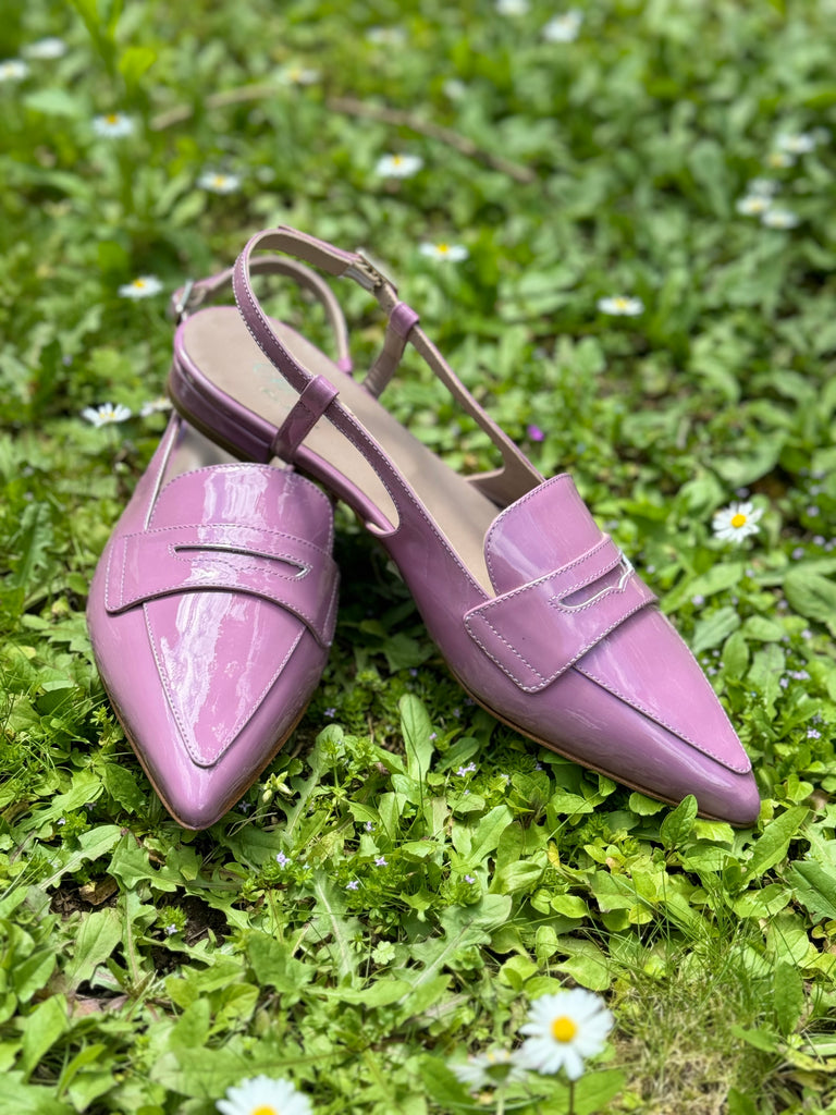 Saldalo flat a punta in vernice ortensia, modello Fiammetta, vestibilità regolare