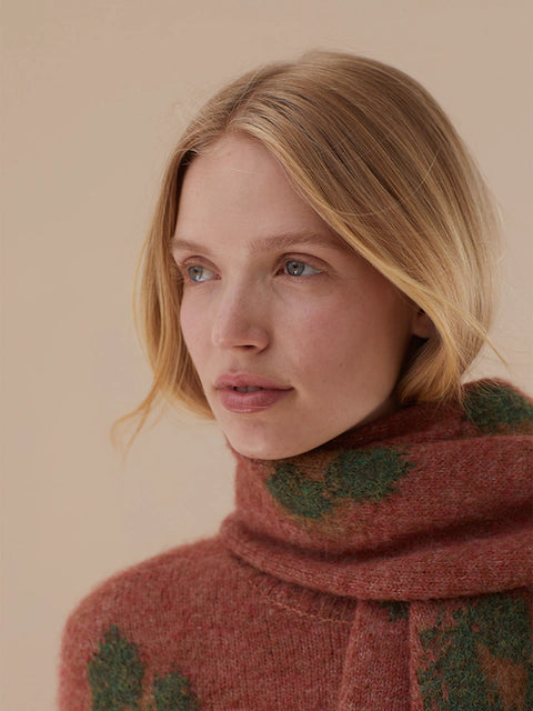 Sciarpa jacquard in maglia sostenibile. Misure: 40 cm x 180 cm